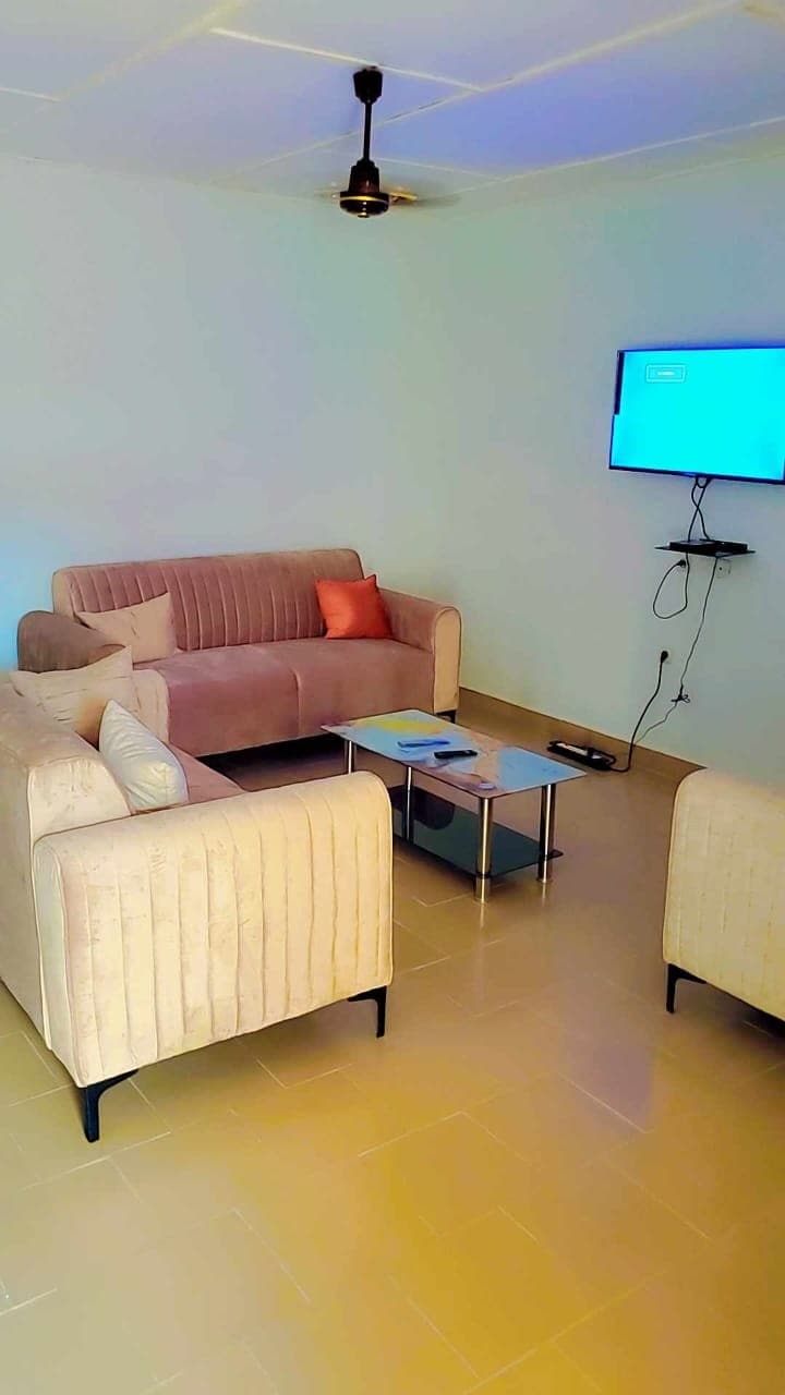 Oubliez vos soucis dans ce logement spacieux et serein. Cet appartement de deux pièces est composé de deux climatiseurs fonctionnels dans chaque pièces, d’une salle de bain, d’un balcon, d’une cuisine super équipée. Un cadre paisible, calme et sécurisé pour vous permettre de passer un agréable séjour (cours ou longs) et surtout à prix et tarifs abordables. Nous vous y attendons.