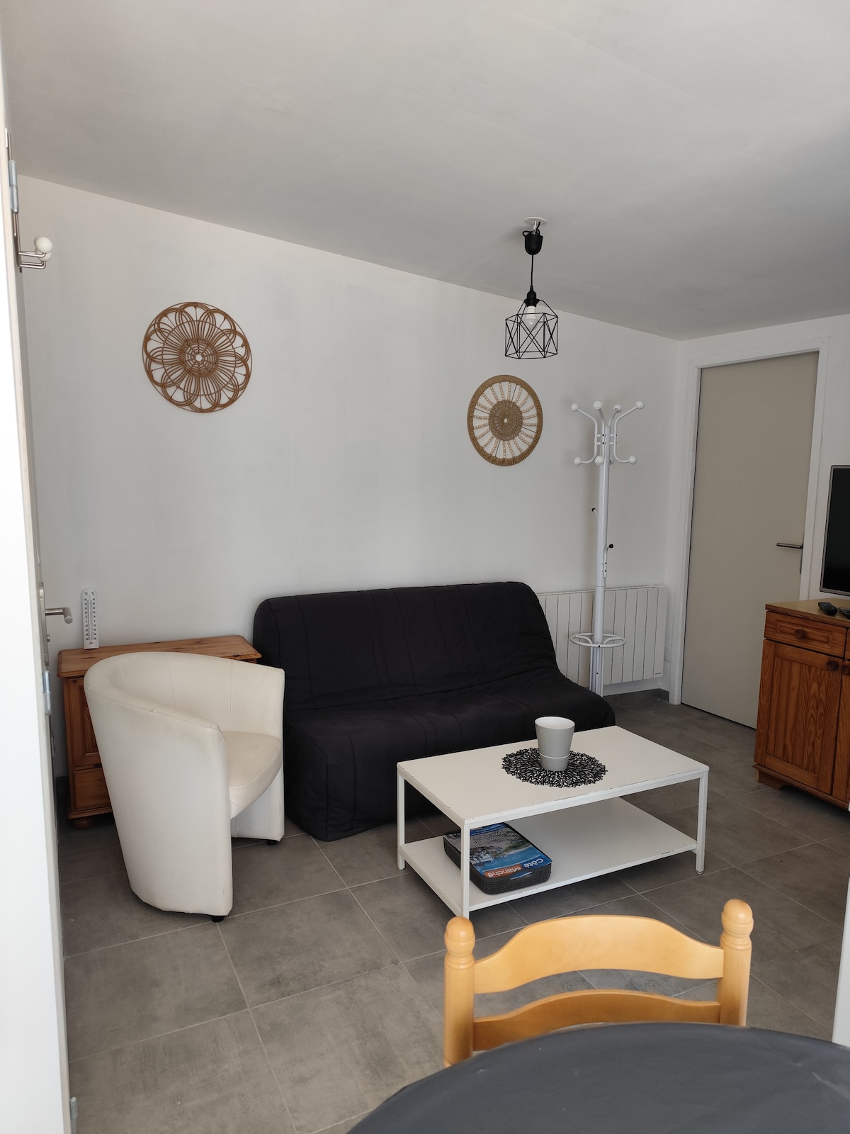 Studio de 35 m2 refait à neuf, à 100 mètres de la plage et ses cabines. Très sympa, agréable facile à vivre. Il se compose d’un coin cuisine, un coin chambre, une belle pièce de vie avec télévision, wifi, bureau et une salle de bain (les serviettes et les draps sont fournis). Le studio s’ouvre sur une terrasse avec salon de jardin.