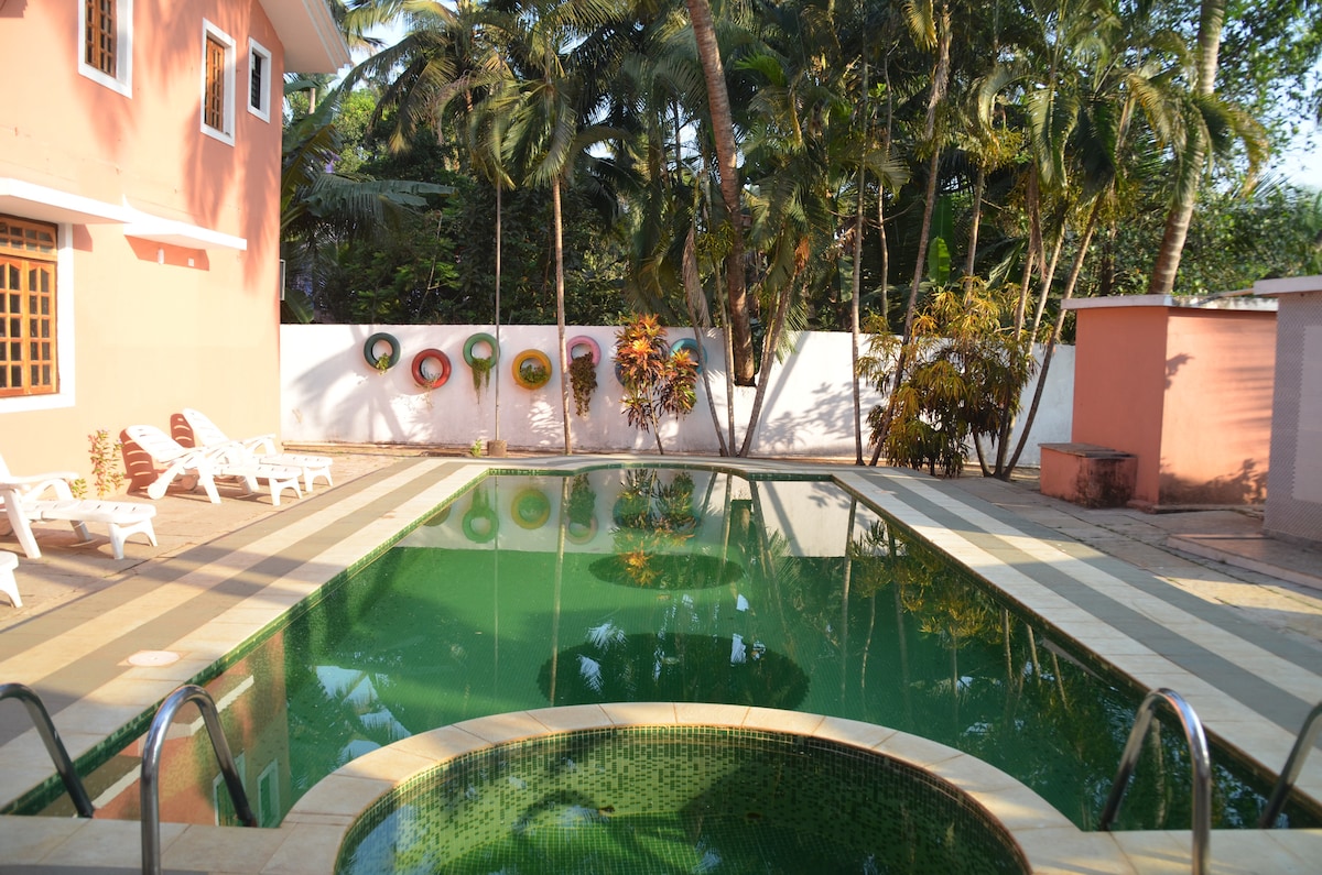 'La casita' is a petty studio villa , set in a prestigious condominium located in the south Goan village . Its well furnished and comfortable for two persons. The living room opens out to a spacious wide patio overlooking the pool.Kitchen is well equipped. Please contact the owner to get all details before confirming the booking. Instant booking is allowed only till the end of October. breakfast is not provided but can be arranged.