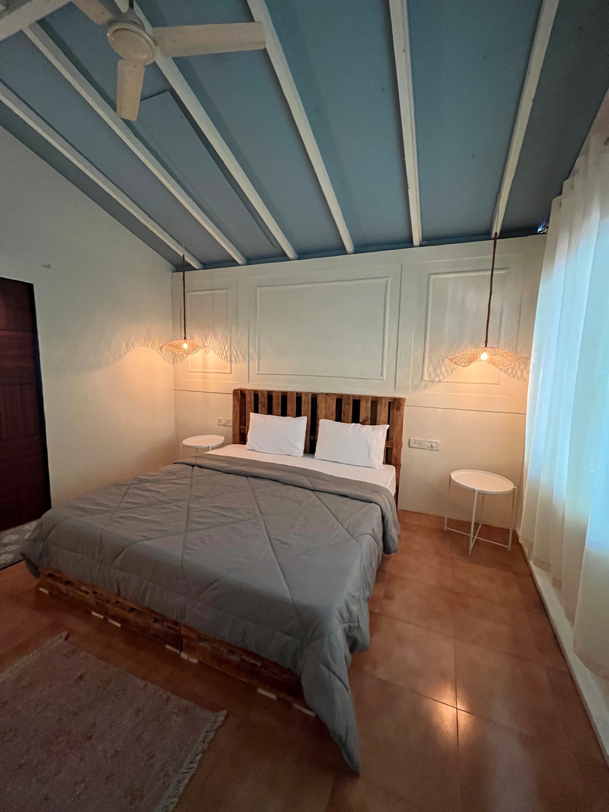 Our place is a very simple yet comfortable bedroom with a separate bathroom. It's only a 5-minute walk to the beach. It boasts a proper king size spring mattress to ensure you get a great night's sleep. It features a small outside space to enjoy the Goa sun. The room is on the ground floor of a two-story building in a quiet location. Perfect for couples, solo adventurers, business travelers, and even your furry friends! Welcome to your perfect retreat.