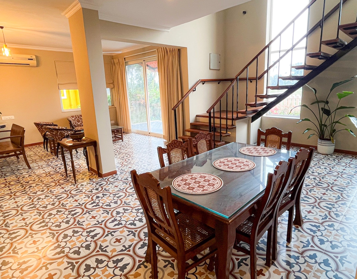 Colonial styled villa with three air-conditioned bedrooms (attached bathrooms), an open terrace connected to a Billiards room, a living room with a 52-inch smart TV, a fully equipped kitchen (attached laundry room) and a separate dining area which opens up into your private garden. Note: Chef/meal charges are additional, and should be placed at least 24 hours in advance.