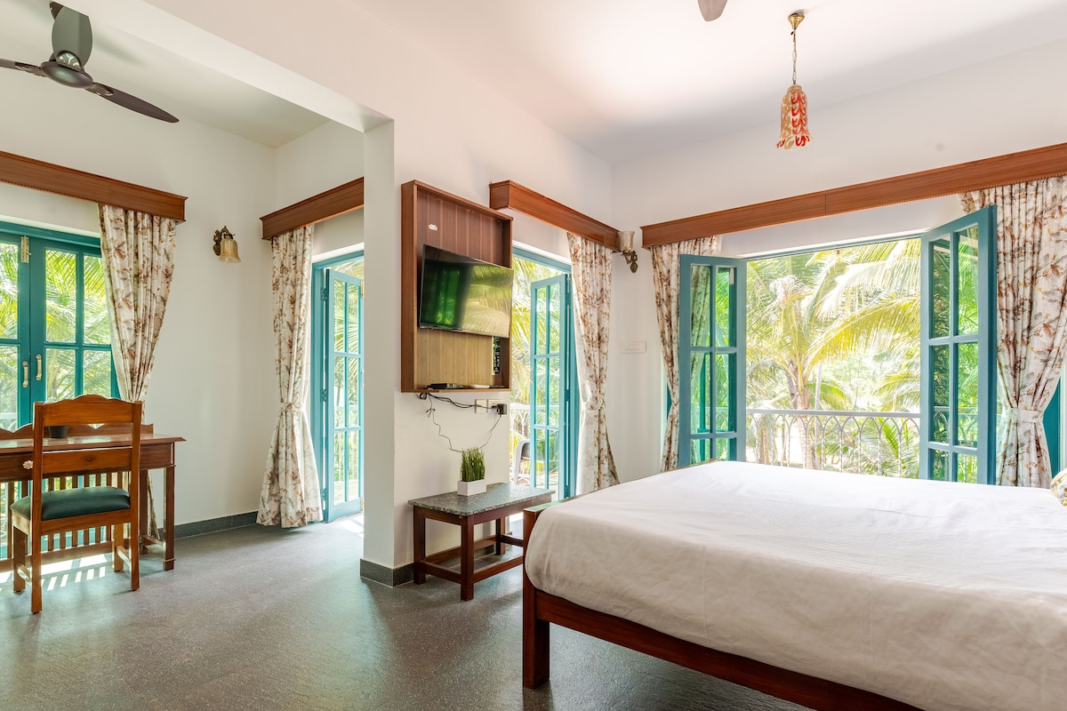 Welcome to Ancessaao's 🏡🌴- your authentic goan escape in Assagao, just 10 min away from Vagator & Anjuna Designed for slow living and intimate escapes, this cabin blends with charm with modern comforts, perfect for couples or solo travlers seeking relaxation and privacy. Key Features AC & Wifi ❄️| TV & mini fridge 🍺| Private Verandah & sunlit interiors 🛏️| Kitchenite (not kitchen)| Tea, coffee & milk sachets ☕| power backup ⚡| Laundry available| Gated Property 🚪| Parking inside 🅿️