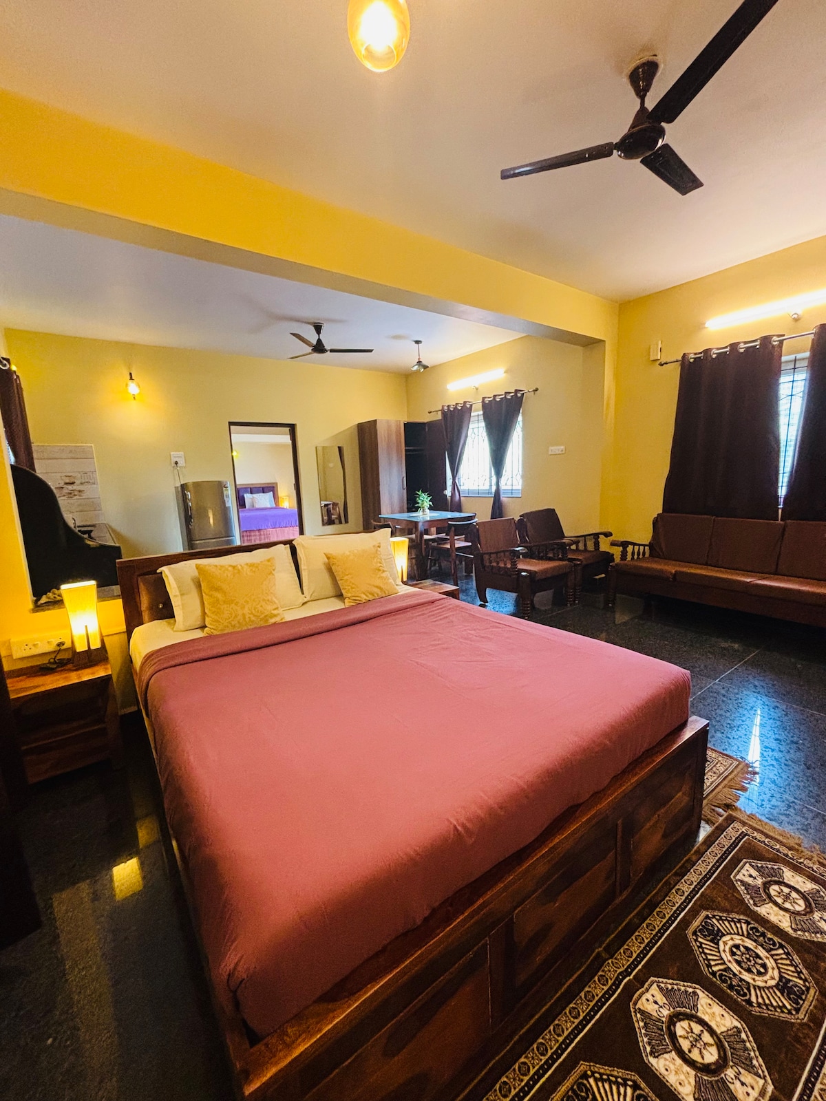 Modern Studio Apartment in the Heart of Patnem – Walk to the Beach! This self-contained premium studio apartment offers a spacious open-plan layout that combines the living room, bedroom, and kitchen into one cozy, well-appointed space. The apartment is fully furnished and thoughtfully designed to meet all your basic needs, whether you're here for a short getaway or an extended stay. Enjoy fast, high-speed Wi-Fi, perfect for remote work or staying connected while you travel.