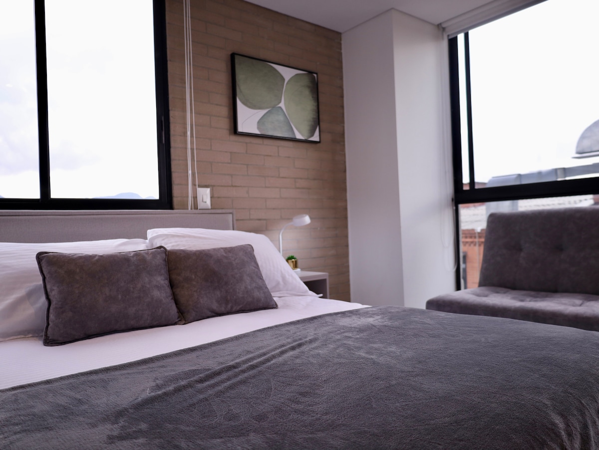 Ideally located for business trips—just a 10‑minute walk to the U.S. Embassy, 4 minutes to expos and conventions at Corferias and Ágora, and perfect for academic stays near universities such as the National University. Our charming 1-bedroom apartment offers: A comfortable double bed. A fully equipped kitchen. A bright, inviting terrace. A 43" smart TV. WiFi. A bathroom with an electric water heater. Common co-working & gym. Close to public transport, restaurants, and shopping.