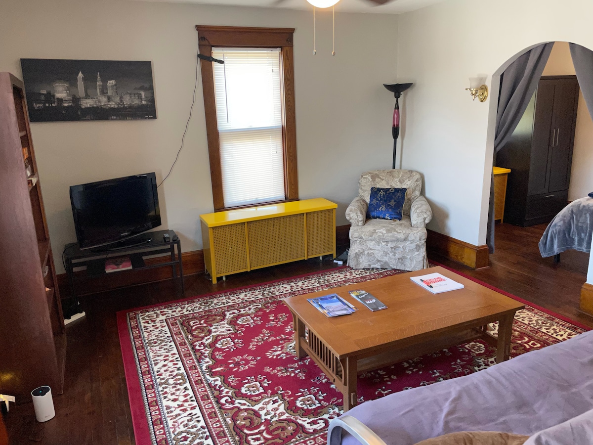 Charming vintage upstairs apartment on the edge of downtown CLE in Asiatown. The house is set back off the street behind 2 bungalows, so it is very quiet. Just a few blocks from I 90 E & W. No more than 2 miles from Rocket Mortgage, Playhouse Square, CSU, Progressive Field, Cleveland Browns Stadium, Great Lakes Science Center, Rock and Roll HOF & House of Blues. Walking distance to Agora & Temple Live(Masonic Temple). Close to CLE Clinic main campus & University Circle. Great local restaurants.