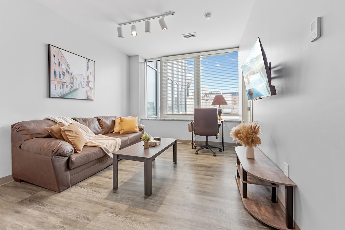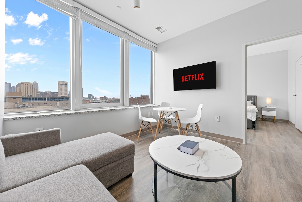 Stay at one of Cleveland’s premier luxury residences, a condo crafted for guests who value elegance, comfort, and convenience. With a Walk Score of 98/100, you’re only moments from the city’s best dining, nightlife, and attractions—then retreat to your private oasis to unwind in style. ✔️ Luxury 1BR/1Bath Condo ✔️ Open-Concept Living ✔️ Full Modern Kitchen ✔️ Smart TVs ✔️ High-Speed Wi-Fi ✔️ Workspace ✔️ Washer/Dryer ✔️ Parking available $ ✔️ 24/7 Security ✔️ Fitness Center See more below!