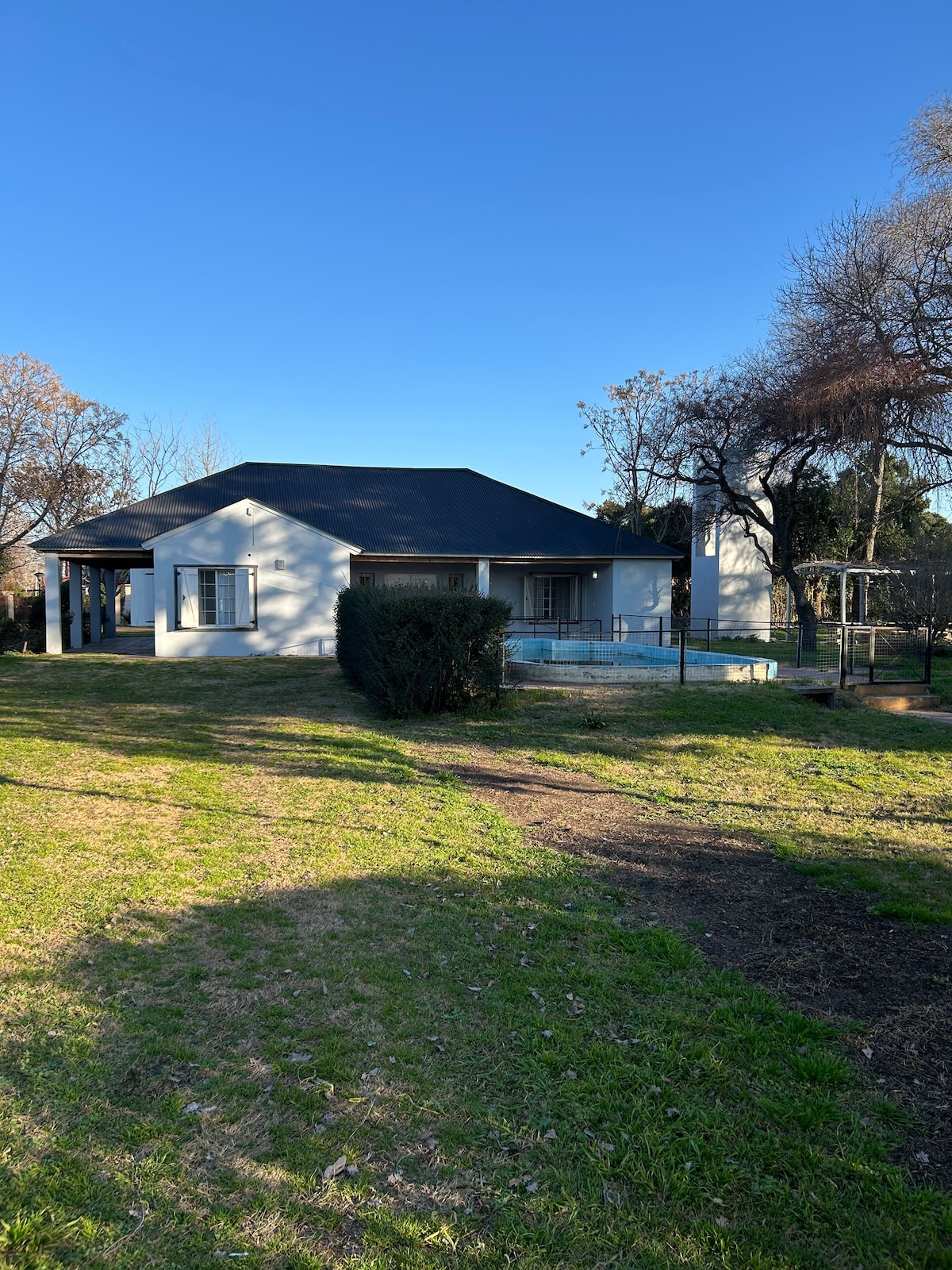 Tranquila casa de campo ubicada en una hectárea de parque, en un entorno de campo único a una hora de CABA Y pocos minutos del centro de Mercedes. Ideal para descansar, desconectar y disfrutar de la naturaleza. Una casa con pileta equipada para 4 personas, cuenta con dos habitaciones, una con cama matrimonial y otra con dos camas de una plaza, un baño, amplia cocina totalmente equipada, comedor, galería, parrilla y fogón Se aceptan mascotas. Cuenta con servicio wifi Starlink.