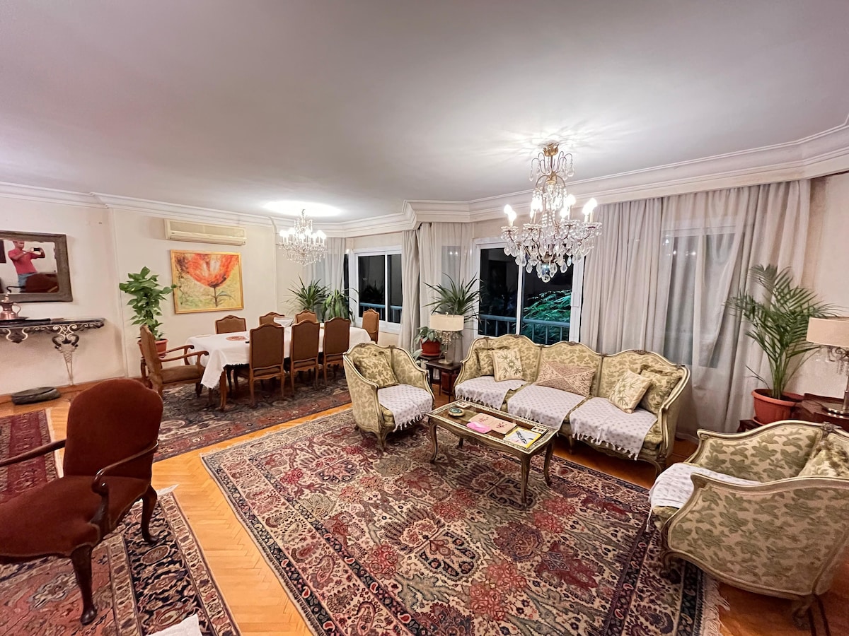Discover serenity and convenience at its best in this spacious and centrally-located apartment. Nestled close to the Nile and less than a 20-minute drive from the iconic pyramids, it offers unparalleled comfort and accessibility. Below the building, a supermarket awaits and a vast garden. Renowned as one of Cairo's finest locales, a variety of restaurants and cafes, perfect for sampling local flavors. Enjoy 24-hour security and luxurious hotel amenities, including a barber shop and hairdresser.