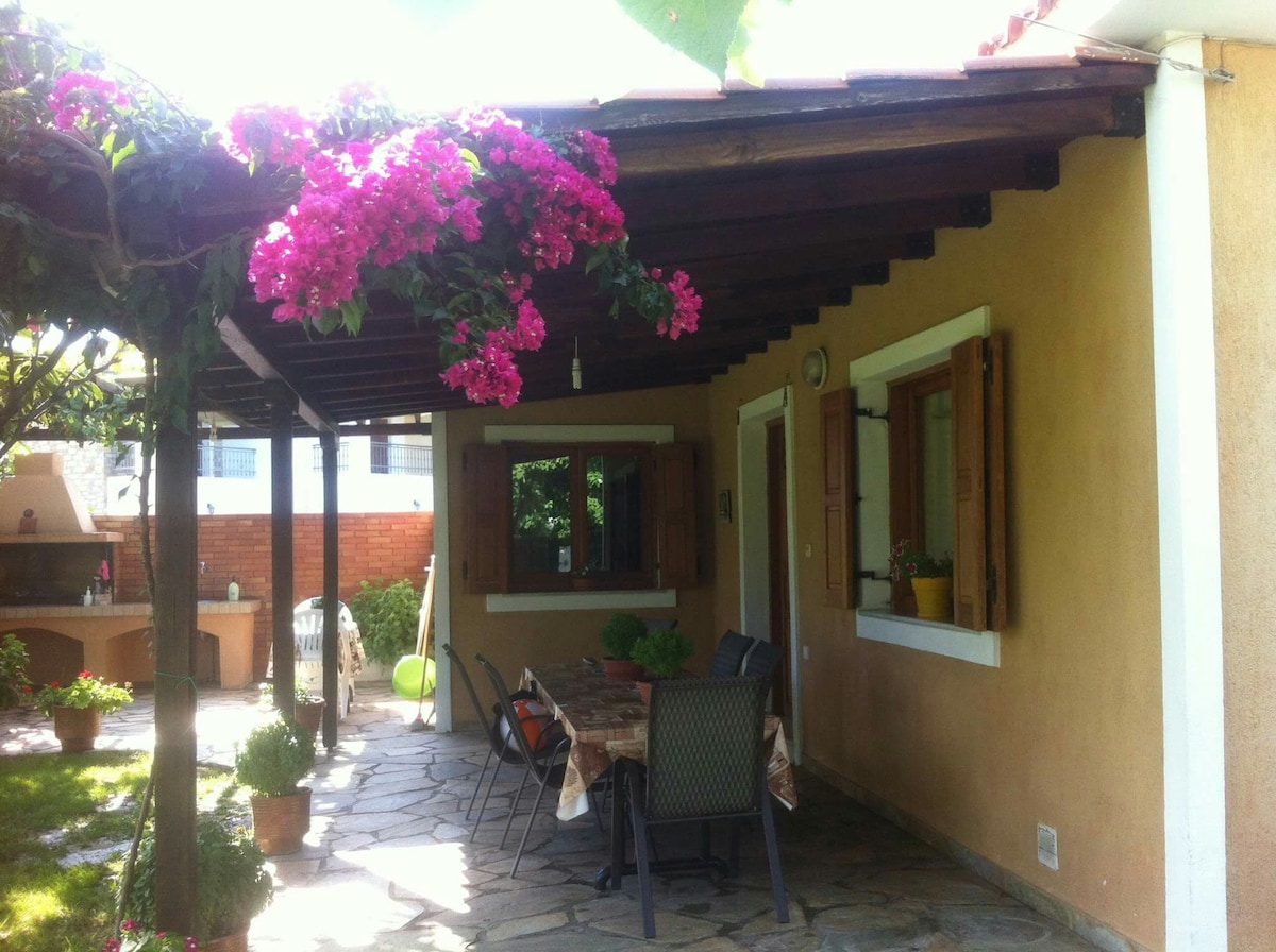 Two-storey house with loft, 108 m² build of stone and wood at the first village of Pelion,Agria. 80 meters from the beach, 7 km from the center of Volos and 19km from Pelion ski center. Outside stone BBQ for the sunny days and fireplace inside for the cold ones.