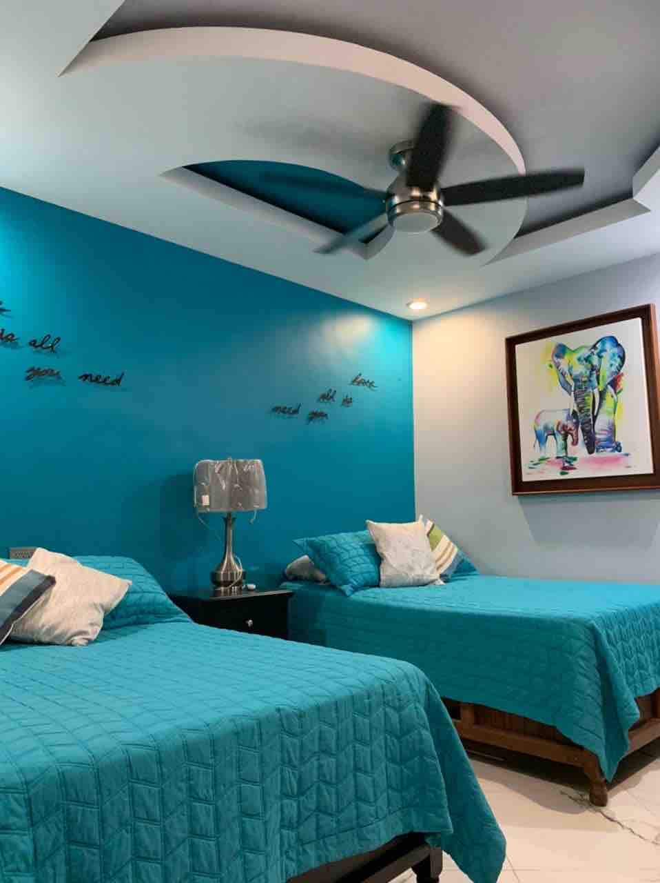 Contamos con todos los servicios y espacios necesarios para que pasen una estancia increíble. En la planta baja contamos con recibidor y una sala de bienvenida, en planta alta se encontrarán con las habitaciones, sala-cama y comedor con aires acondicionados. Cocina amplia con todo lo necesario para sus días de descanso. Terraza en la parte trasera al aire libre para un excelente convivió con la familia y amigos, en donde encontrarás asador y ventiladores de techo.
