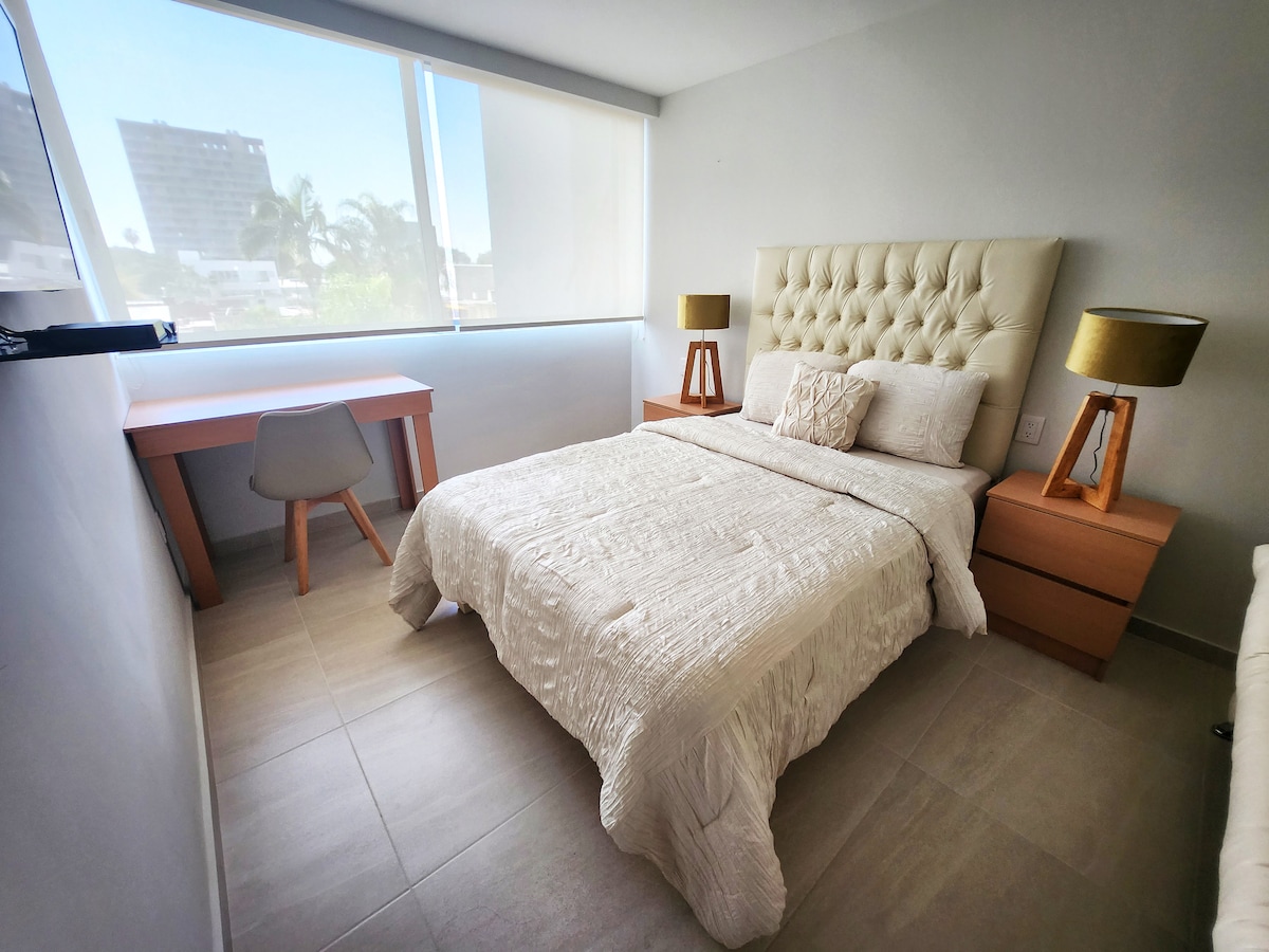 Lujoso departamento con acabados premium y un proyecto de interiorismo cuidadosamente pensado en cada detalle para lograr una experiencia diferente y única, súper acogedor con ropa de cama y colchones premium para que tu descanso sea lo mas agradable posible, cuenta con una gran vista al Bosque de la Primavera y Punto Sur Lifestyle Center. A tan solo 100m de Punto Sur Lifestyle Center: tiendas de ropa, cine, casino, bares, restaurantes CUALQUIER VISITA DEBE ESTAR INCLUIDA EN LA RESERVACIÓN
