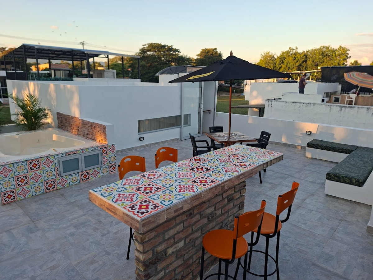 Disfruta con toda la familia la villa del Turpial, acobijado por el verde las montaña en el horizonte. Encontrarás en nuestro hogar de campo, un jacuzzi fresco para sopesar la brisa cálida del verano, la naturaleza en su esplendor y los remolinos a la Van Gogh que decoran los muros. Con la opción de usar los espacios comunes como la piscina, el bbq o el horno de tierra. Encontrarás acá un lugar de descanso y diversión.