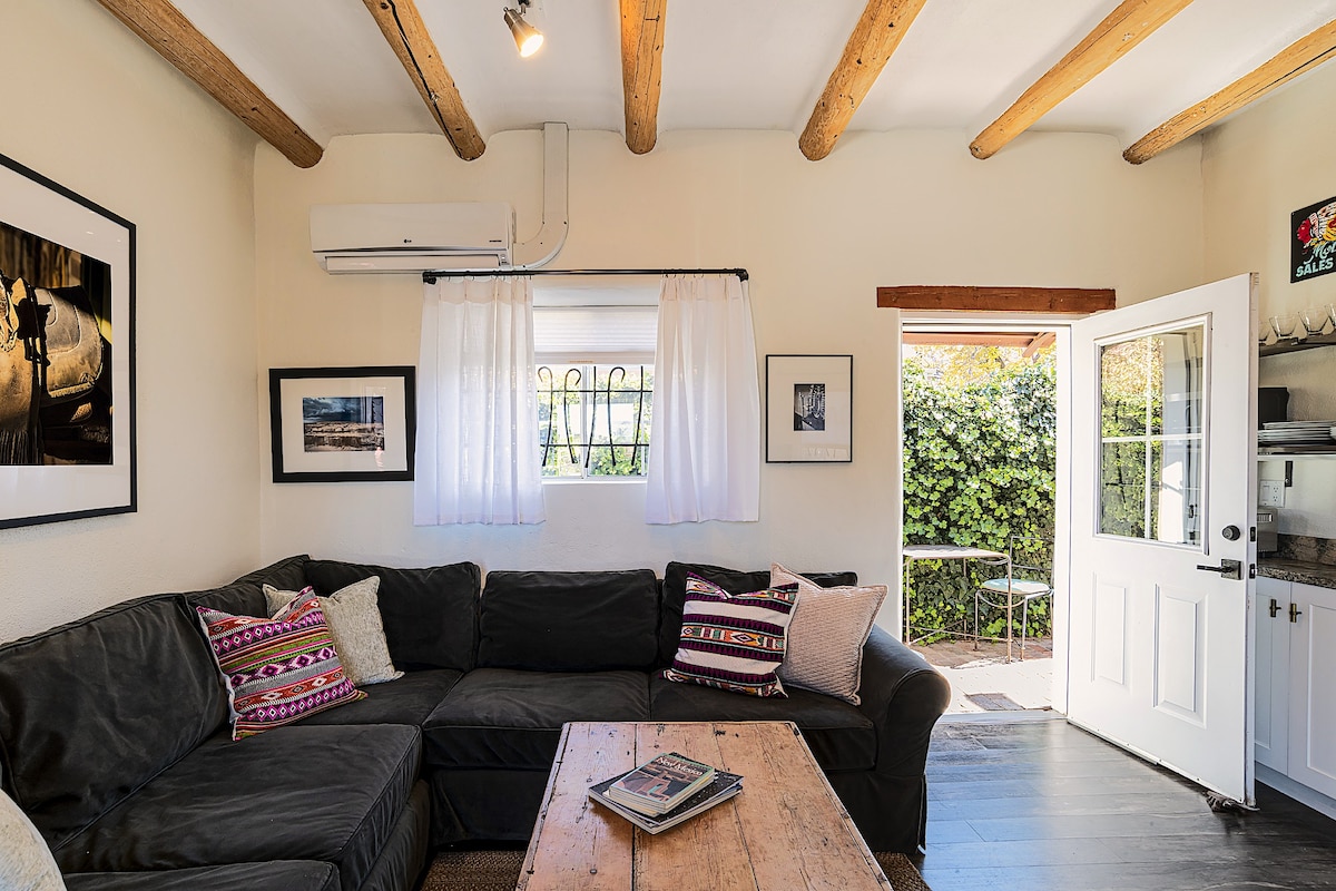 Welcome to Santa Fe! This charming studio cottage and my home share the property in this quiet residential neighborhood. The cottage is full of Santa Fe charm with a cozy, pretty interior, skylights and lots of natural light, a fully-stocked kitchen corner, handmade cabinets, Mexican tile, one comfy queen-sized bed, and a private garden patio. It's a quiet haven but centrally located, just 2 miles from the Plaza/downtown. It's a lovely place for couples, solo adventurers, and business travelers.