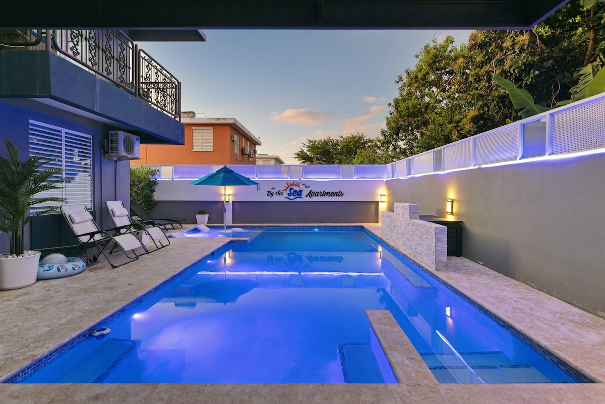 Palmira 8 is a space to rest and feel peace and tranquility. This suite features: personal private pool, spacious bathroom, air conditioning, kitchenette and patio. It's located within a 5 to 10-minute drive from beautiful beaches, restaurants, markets, (BQN) airport and the most popular attractions. Also have a king bed, modern decoration, living room, 70” Smart TV, washer/dryer, dining area, balcony and a private parking. Please note that visitors, gatherings or parties are not permitted.