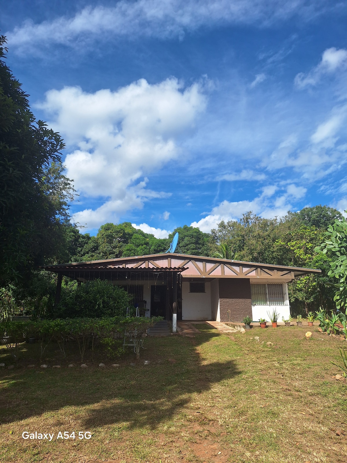 Casa rustica, con techo de zinc, ventanas de persianas, amplia sala y cocina, ademas de una cocina de carbón en la parte exterior, amplio patio con arboles, y áreas para recrearse al aire libre, amplio espacio para acampar