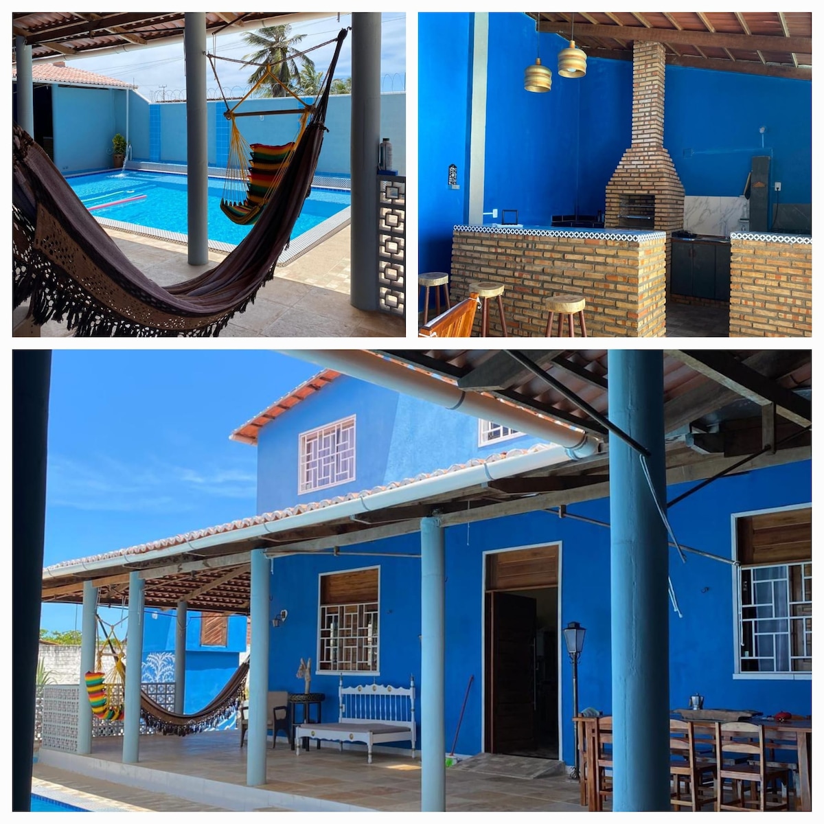 Beautiful beach house with swimming pool in the paradisiacal village of Águas Belas. Only 2 blocks away from the famous beach of Águas Belas and its main bars and restaurants! House with 300m2 of covered area, with a 900m2 overall area. It has barbecue, swimming pool, shower and outside toilet. Beautiful and well maintained garden and room for 3 cars. Interior w/ 3 fully furnished suites including mezanine, fully equipped kitchen with all utensils and appliances, living room w/ TV and WiFi.