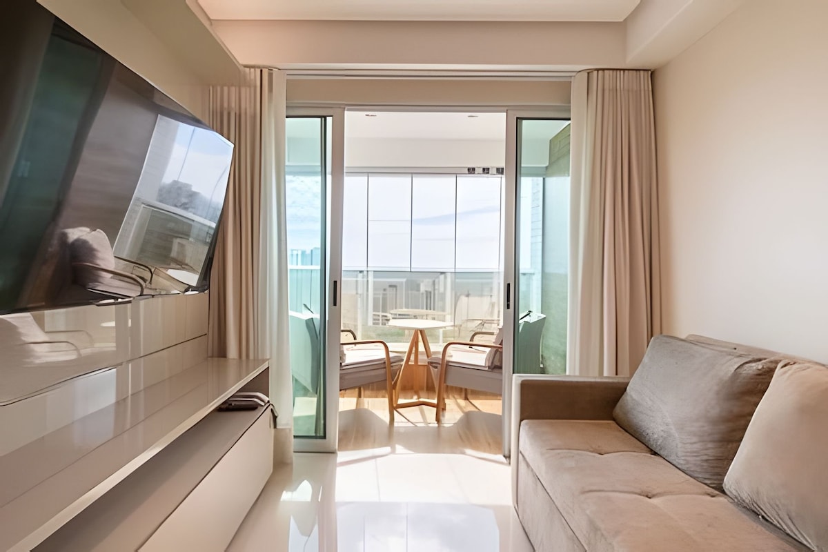 Desfrute de nossa vista panorâmica e um espaço sofisticado e confortável neste apto de 4 quartos. Localizado em um dos andares mais altos do edifício residencial com conceito piscina praia. Ele faz parte de um shopping. Com duas suítes, ar-condicionado em dois quartos e uma cozinha completa, este apartamento oferece a combinação perfeita de luxo e conveniência para suas estadias de lazer ou negócios.