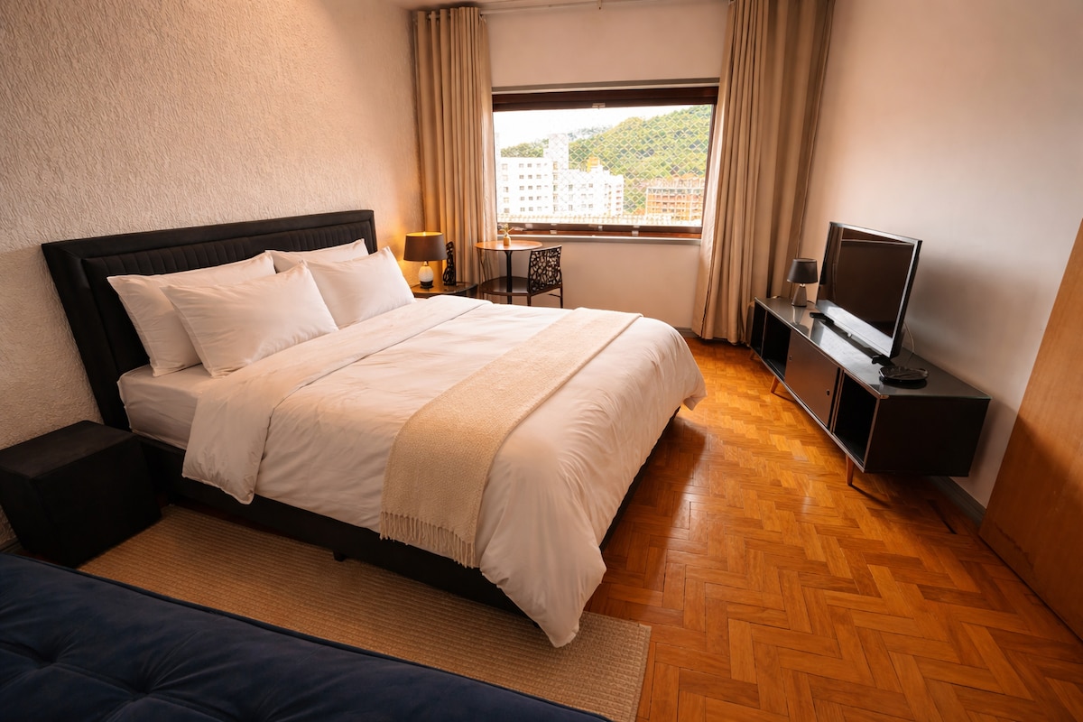 ✨Conforto, Vista e Localização Perfeita✨ Descubra um apartamento com decoração minimalista e atmosfera acolhedora, situado na charmosa Rua São Paulo, ao lado da Praça Adhemar de Barros, cartão-postal de Águas de Lindóia Com 2 quartos amplos e vista para a cidade, o Apartamento oferece praticidade e conforto, além de: • Ventilador teto •Portaria 24h •Wi-Fi de alta velocidade • Cozinha completa (geladeira, fogão, micro-ondas e utensílios) • SmartTV 43’’ • Secador e ferro passar • Vaga de garagem