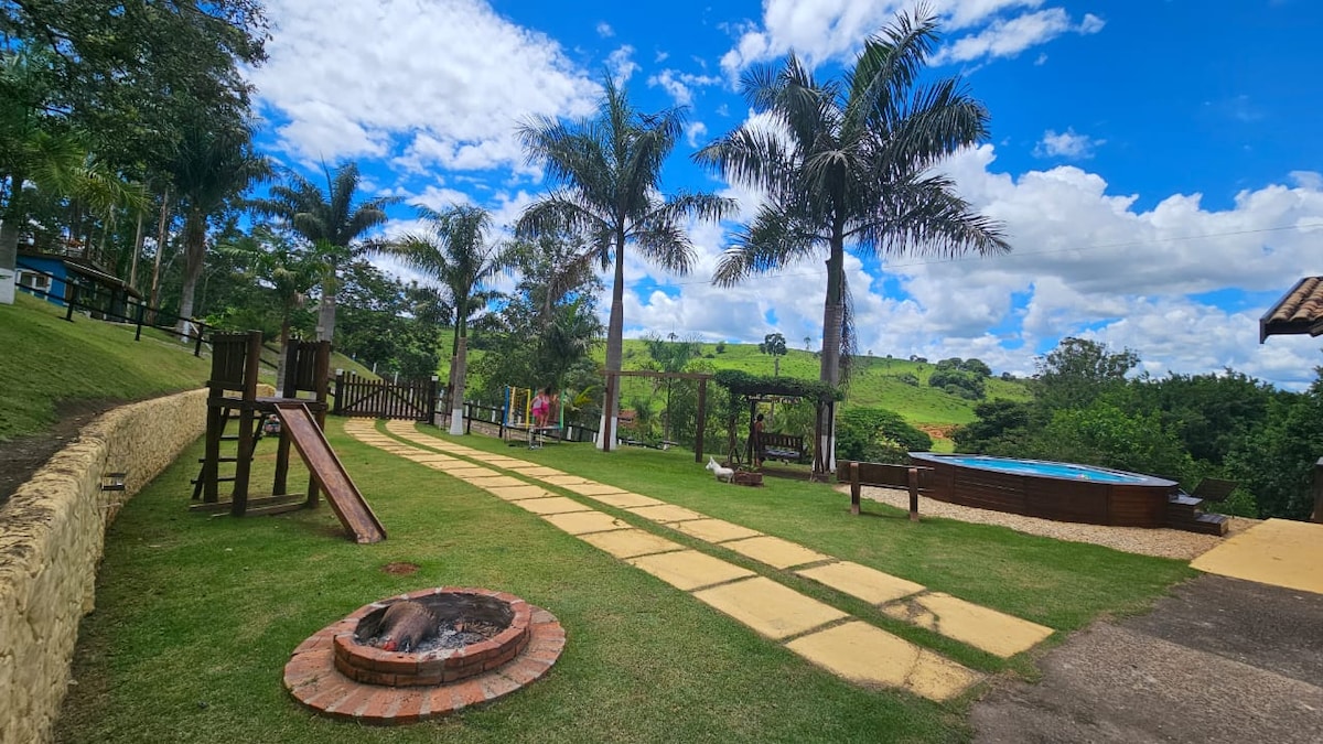 Encontre paz e tranquilidade.Ideal para quem deseja fugir da correria do dia a dia, nossa casa acomoda até 6 pessoas, em um ambiente acolhedor e relaxante. Desfrute de uma piscina, um amplo espaço com parquinho para as crianças, churrasqueira, deck para apreciar a vista espetacular ao redor.
