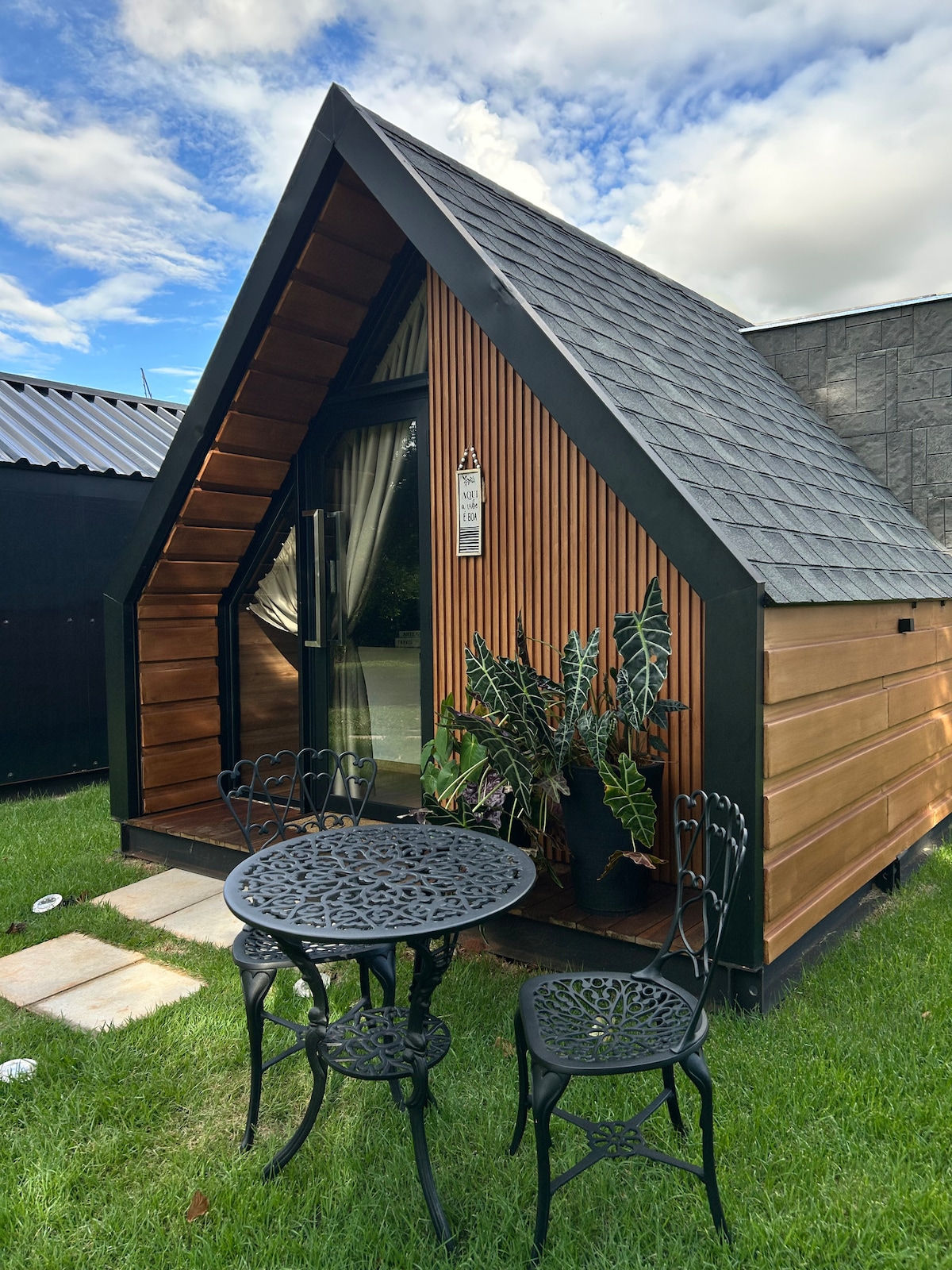 Aqui o despertador é o canto dos pássaros, a luz do amanhecer invade a suíte pela janela panorâmica e a serra do Itaqueri aparece diante de você como um quadro vivo, mudando de cor ao longo do dia. A Cabana foi pensada para casais que querem sair da rotina sem abrir mão do conforto. Durante o dia, silêncio, natureza e vista aberta para respirar fundo. À noite, clima intimista: filme no telão, iluminação aconchegante e uma jacuzzi interna perfeita para relaxar.