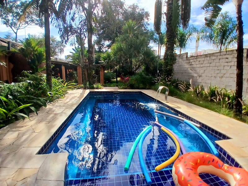 Casa estilo rústico , espaçosa, com cozinha gourmet fechada com vidros blindex , que se abrem no verão e podem ser fechados no inverno ,com churrasqueira, fogão a lenha e a gas. Temos 03 suítes completas e decoradas, com tvs ventiladores de teto e roupas de cama e banho. Ampla varanda. jardim , piscina , e wi-fi 5G que funciona bem na casa toda . Estamos a poucos minutos do centro da cidade onde se encontra todo tipo de comércios ,mercados, lojas, farmácias ,agropecuárias etc