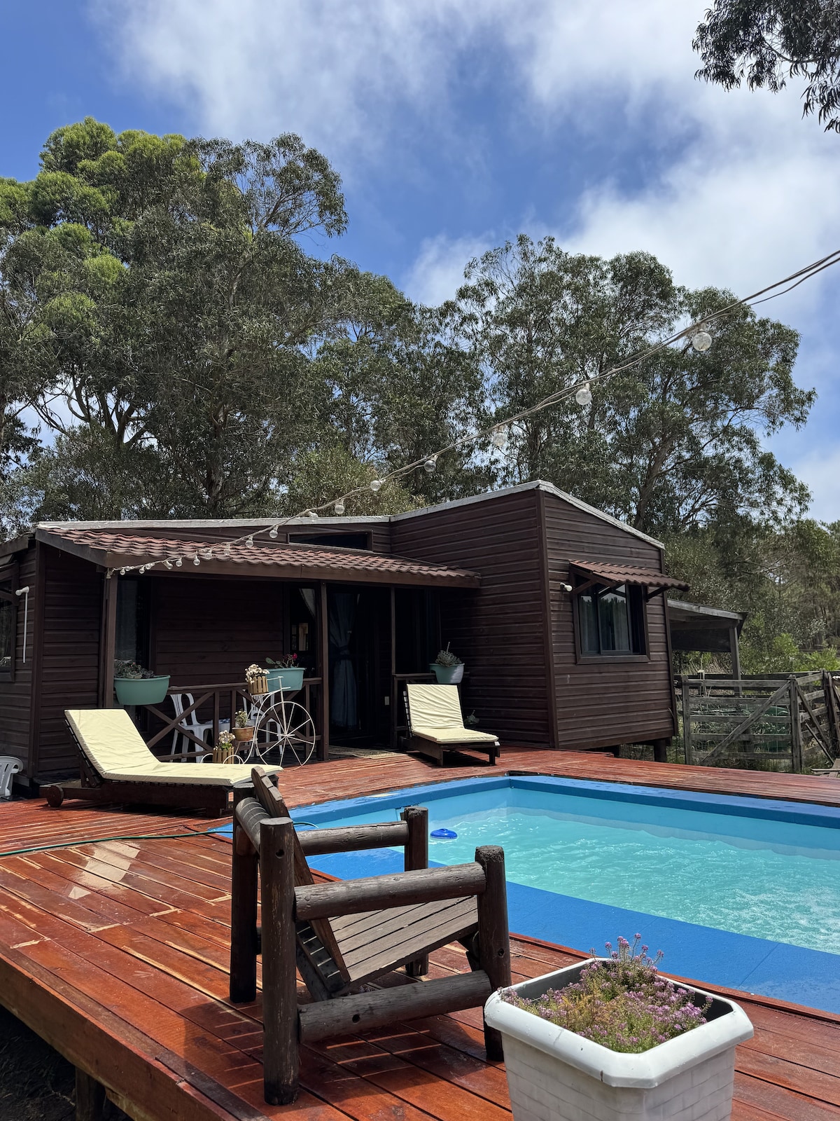 Relájate con toda la familia en este alojamiento donde la tranquilidad se respira. Disfruta de esta acogedora cabaña equipada para que tu estadía sea cómoda y agradable. Dos habitaciones: Una con cama doble y otra con cama marinera más un colchón individual. Capacidad ideal para 4 personas, con posibilidad de alojar hasta 5. Un baño con calefón a gas para agua caliente en todo momento. La piscina no es climatizada! Amplio patio, exclusivo uso de la piscina.
