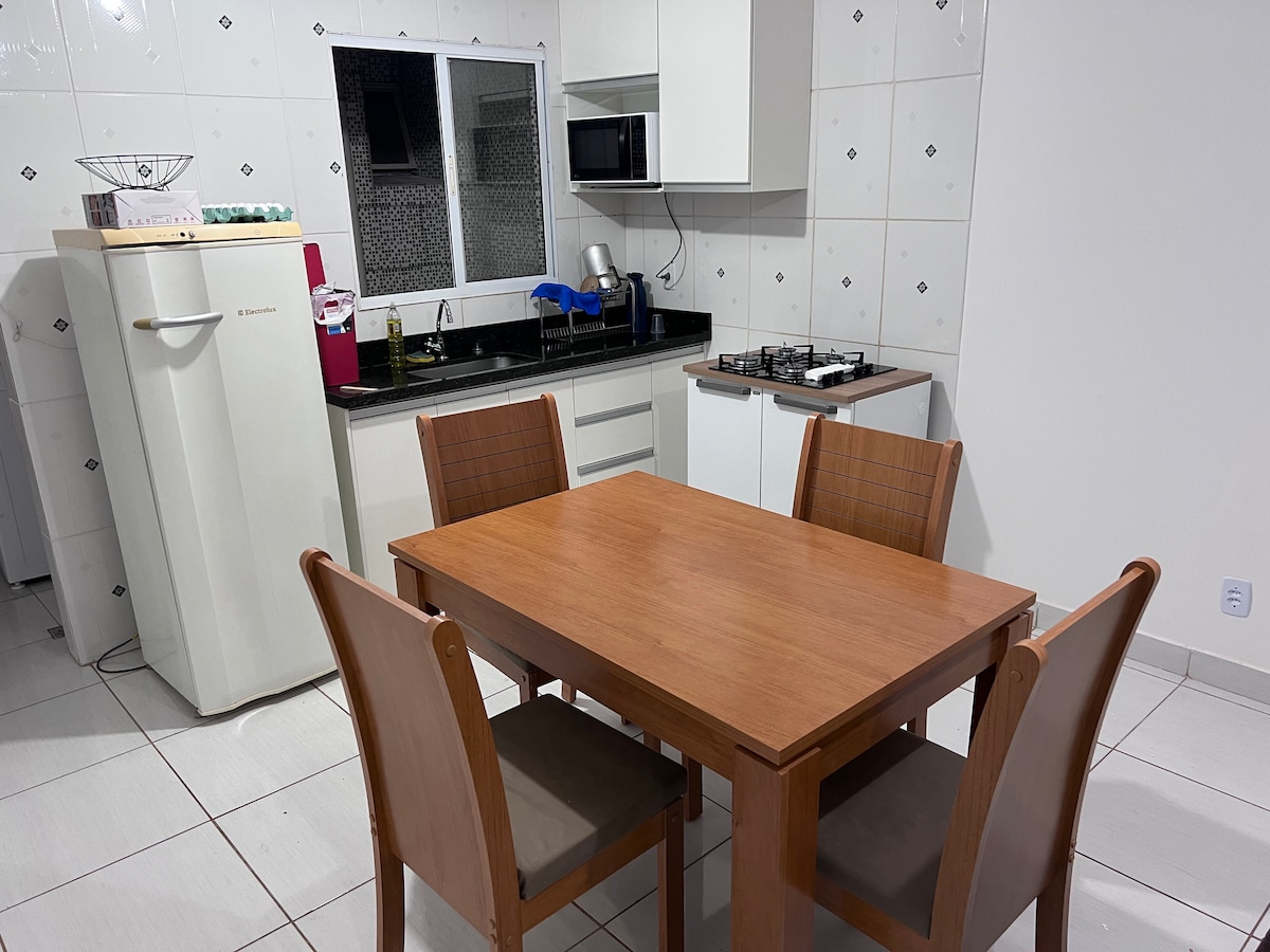 Seja bem-vindo ao seu cantinho ideal em Águas Lindas! Nosso apartamento de 1 quarto é perfeito para quem busca praticidade, conforto e excelente localização. Localizado no centro da cidade, você estará a poucos passos de mercados, farmácias, restaurantes, padarias e tudo o que precisa para uma estadia tranquila. 🛏️ O espaço • Quarto espaçoso com cama de casal • Sala aconchegante com sofá e TV • Cozinha equipada com geladeira, fogão, micro-ondas e utensílios básicos • Banheiro • Wi-Fi