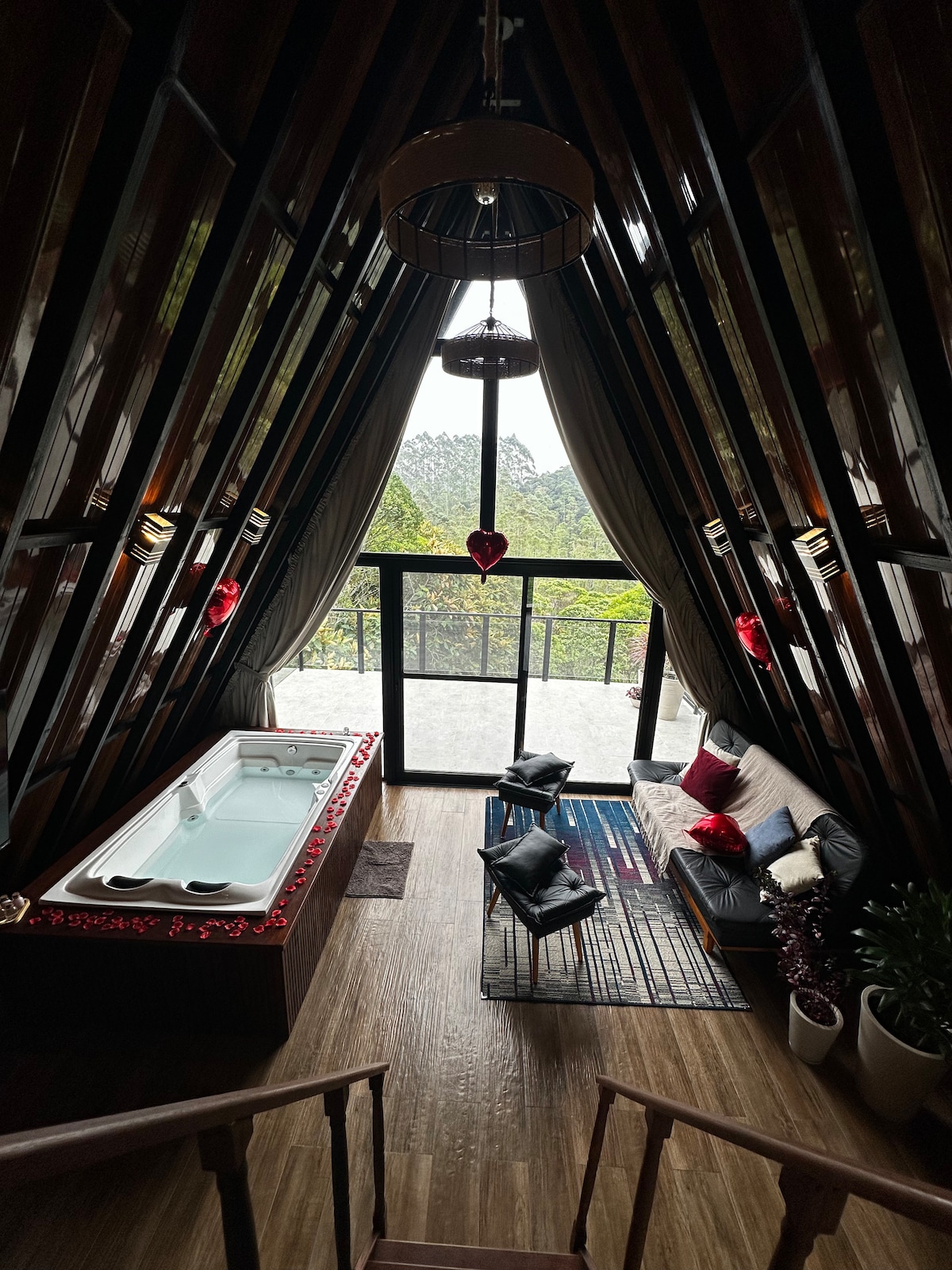 Refúgio perfeito para casais que buscam privacidade e conexão com a natureza. Uma aconhegante cabana, toda climatizada, com vista deslumbrante para a maior montanha da região, oferece todo o conforto para uma estadia inesquecível. Relaxe na banheira de hidromassagem, aprecie momentos acolhedores ao lado da lareira, e aproveite o local com quem você ama. Um espaço pensado para uma escapada tranquila e memorável.