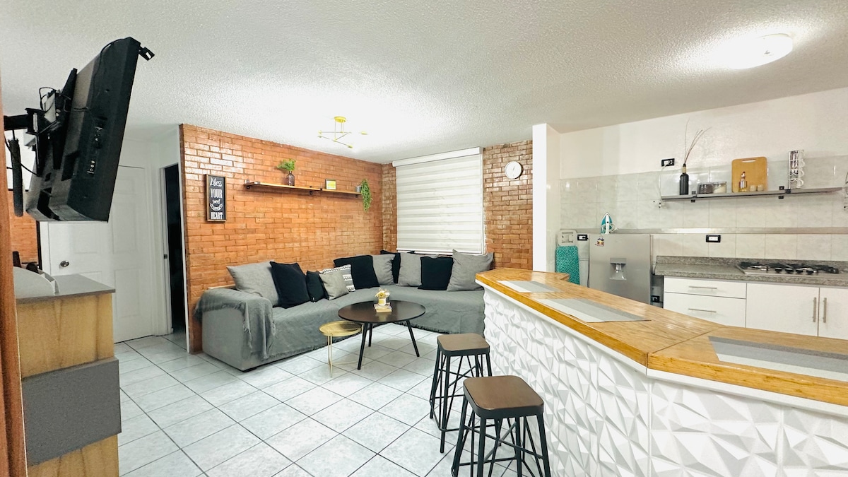 Stay in this industrial-style apartment, ideal for companies, families and groups of up to 5 people. It is located in a private and safe environment, just a 5-minute walk from the center of Aguascalientes, with restaurants and bars a few steps away and quick access to Av. Zaragoza and Independencia. It has private parking for 2 cars, ideal for working remotely with high-speed Wifi and TV. Reserve today! If we invoice *Parties are not allowed.