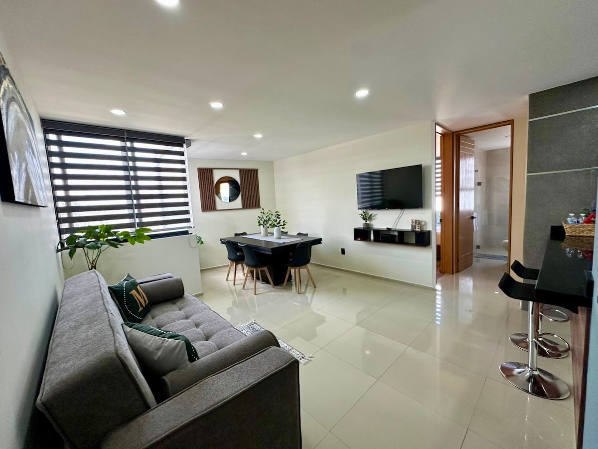 **** Just 5 minutes away from the FNSM, immerse yourself in the luxury of our apartment located in the charming historic district of Aguascalientes, right in the center. Enjoy amenities such as a parking space, a terrace with a bar, and a green area. Perfect for remote work and extended stays. Additionally, for your convenience, we offer billing options. Book now and experience luxury in the historic heart of Aguascalientes!