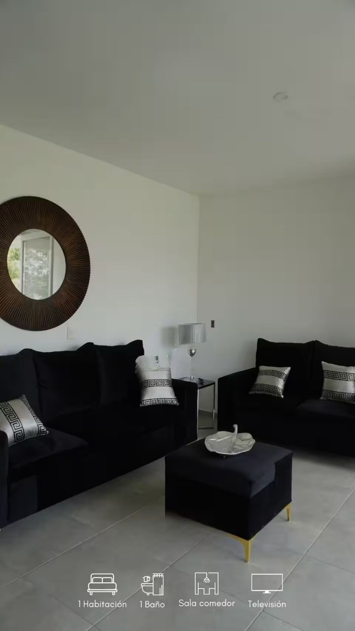 Un departamento residencial con mucho estilo ideal para disfrutar con tu familia, dentro de un exclusivo residencial con alberca. ••SI FACTURAMOS•• Cuenta con áreas comunes como alberca,dog park, ajedrez gigante, canchas de fut bol, juegos infantiles, etc. IMPORTANTE: Para el uso de alberca se debe solicitar las pulseras antes del inicio de la reservación. NO ofrecemos el servicio de aire acondicionado, lavadora o secadora.