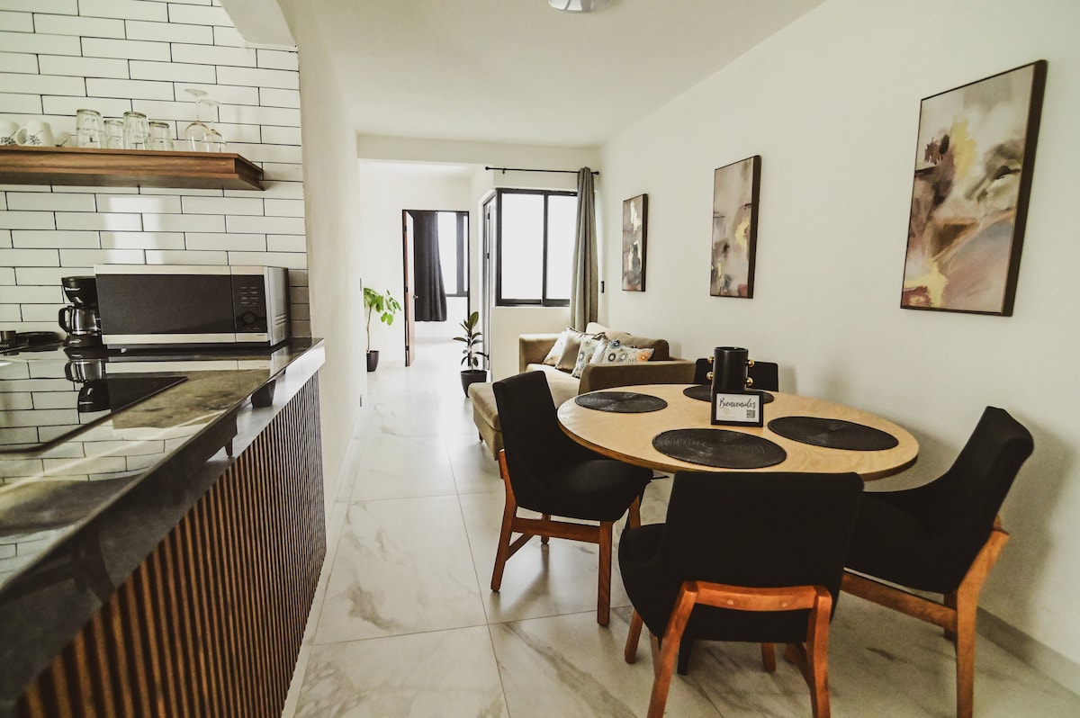 Stay in this industrial-style apartment, ideal for companies, families and groups of up to 5 people. It is located in a private and safe environment, just a 5-minute walk from the center of Aguascalientes, with restaurants and bars a few steps away and quick access to Av. Zaragoza and Independencia. It has private parking for 2 cars, ideal for working remotely with high-speed Wifi and TV. Reserve today! If we invoice *Parties are not allowed.