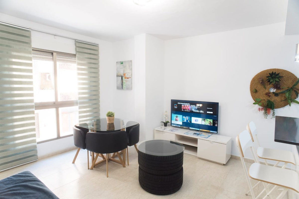 Disfruta de una experiencia de lujo en este céntrico alojamiento en pleno corazón de Cartagena. Se encuentra en una de las mejores zonas residenciales de la ciudad, a tan solo 50 metros del Corte Inglés y con aparcamiento gratuito dentro del propio edificio. También dispone de una terraza diseñada siguiendo el estilo mediterráneo con una amplia bancada y dos taburetes donde disfrutar de veladas en el exterior. Hay cargadores eléctricos de alta capacidad enfrente del edificio (50 mts)