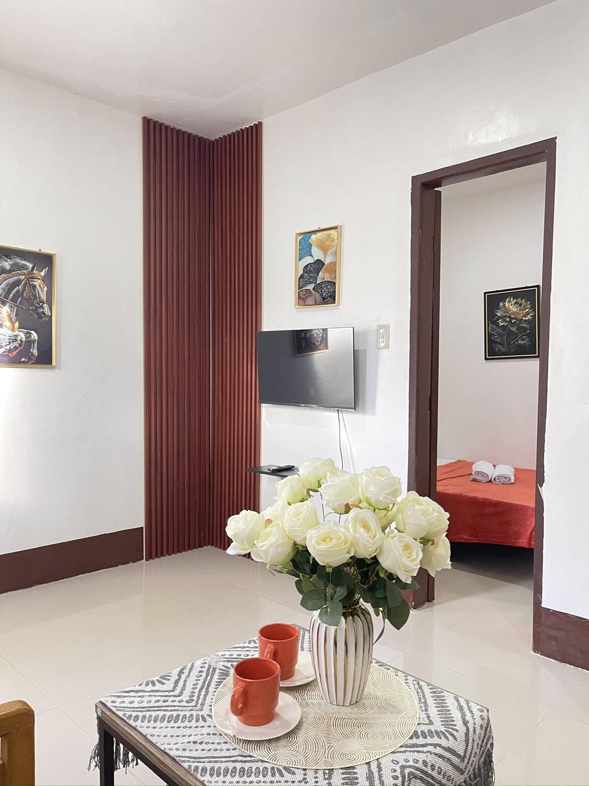 FULLY FURNISHED AirBnB/Staycation TRANSIENT Apartment FOR RENT Cabadbaran City ■ Fully air-conditioned 1-bedroom ■ Living room ■ 1-bathroom, bidet spray ■ 200 Mbps unlimited internet connection ■ 32” Google TV, Netflix-ready ■ Fully equipped kitchen ■ 24/7 CCTV Security Camera ■ Bath Towels and Linens ■ Parking ■ Hand soap ■ Dishwashing liquid with a sponge ■ Drinking water ■ Unlimited Wi-Fi We also offer the following: 🚐 Airport Pick up and Drop off 🚐 Private Tour
