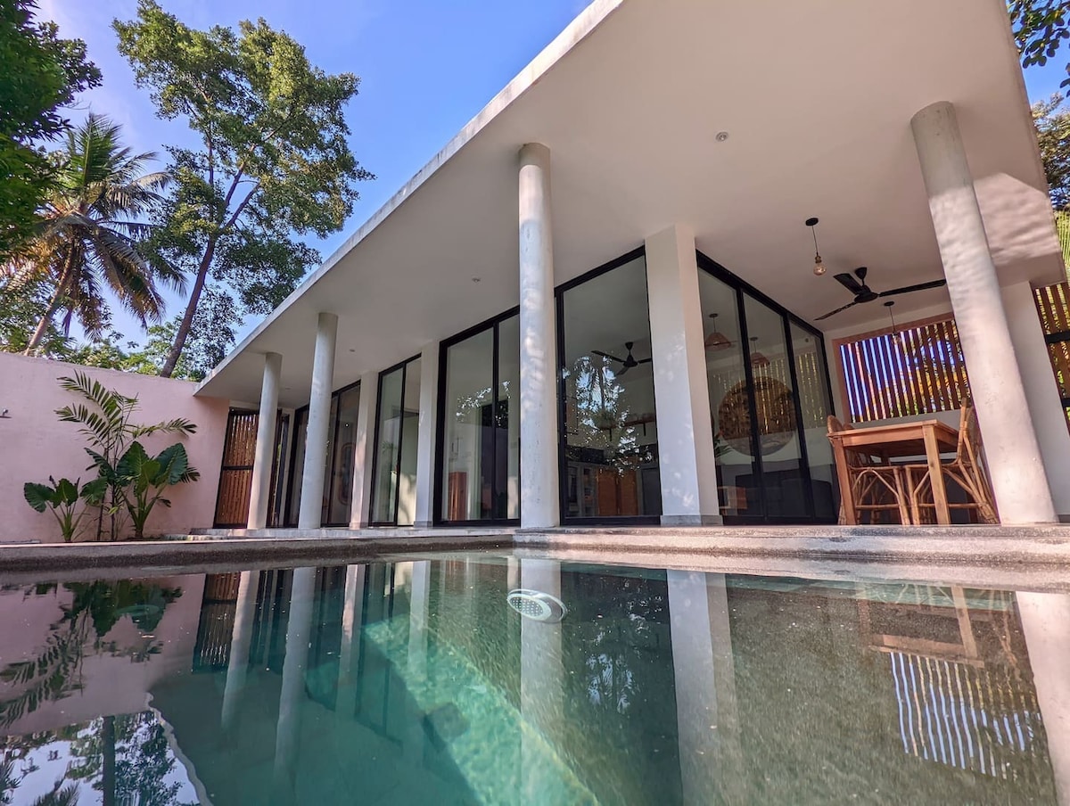 Marigold Gedara was designed as a spacious beach house. It suits surfers, young families and couples wanting a large private villa with pool. We are family friendly! We provide a highchair, infant cot and the only villa on the south coast with a glass safety fence around the pool. It's a 2min walk to the nearest cafe, The Kip. Secret Beach is a 5min walk. Some of the best surf breaks are less than 10mins away. Our fully-equipped kitchen means you can cook or order delivery and dine at home.