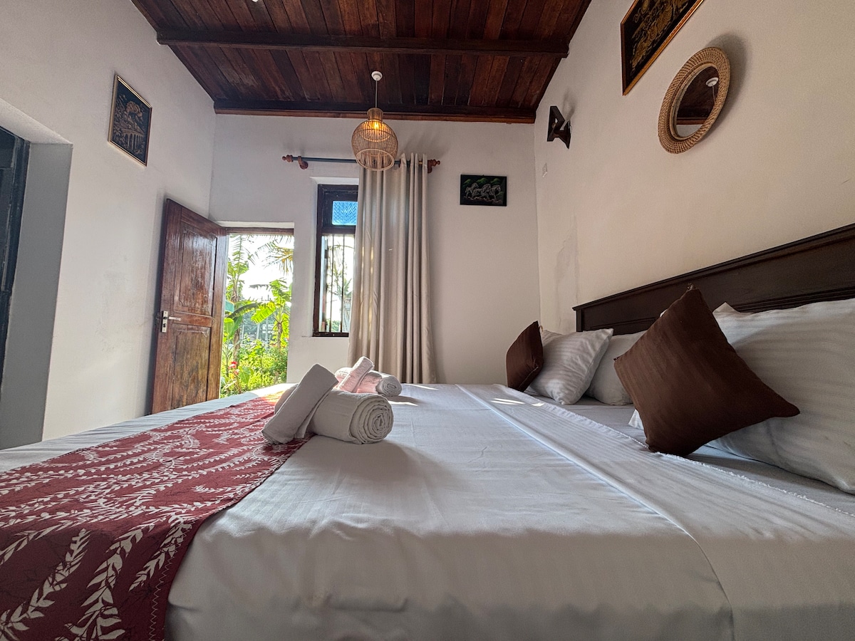 Private self contained 1 bedroom,en-suite bathroom cottage in the garden of our home,access to swimming pool,hammock and a private outside area. Must be dog lovers,we have 2 dogs. We are LGBTQIA+ friendly. The property is in a quiet local village,surrounded by paddy fields and peacocks. The wildlife watching is excellent. Very quiet in the evenings, see how the real Sri Lankans live. Kick back and relax in this calm,stylish space.