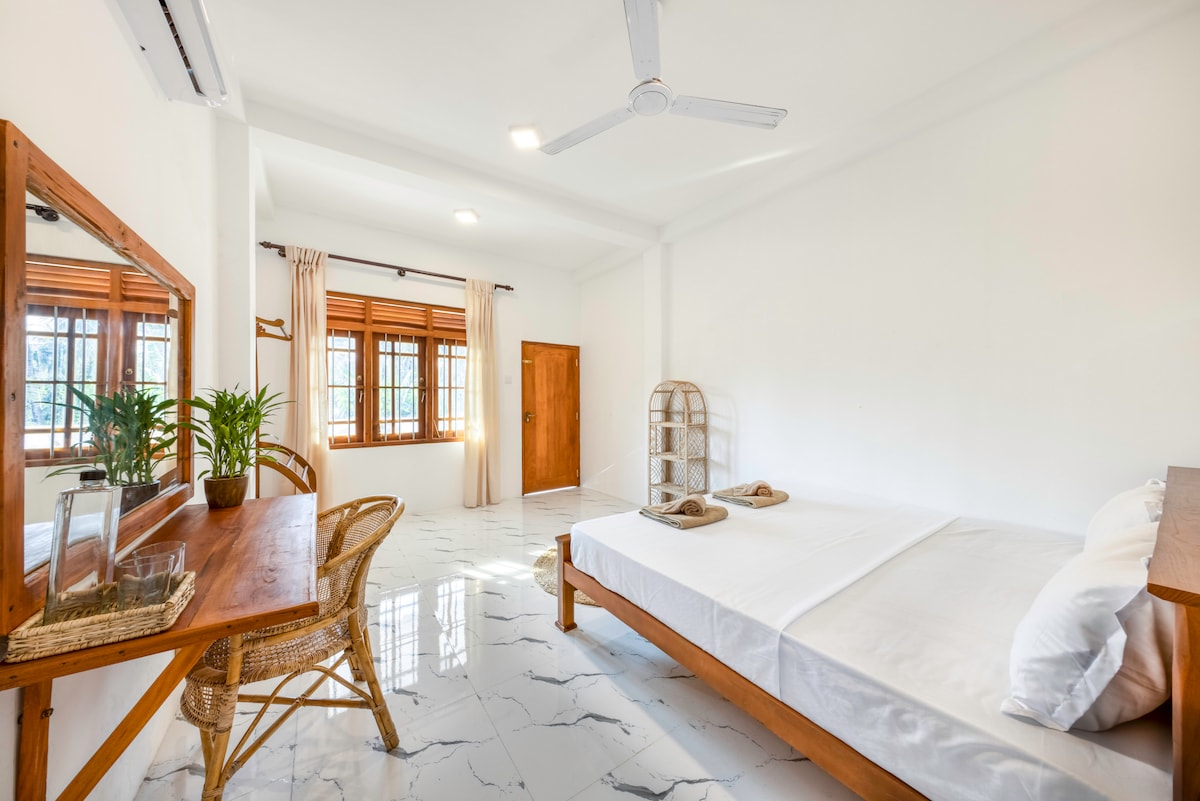 The Loft is a newly built guest house designed to provide all the comforts you need for a relaxing stay. Located in a safe and peaceful area, it's just a 3-minute walk to the beautiful Midigama Beach. You will enjoy: - Air-conditioned room designed by a professional architect - Modern bathroom with solar-heated hot water - Fully equipped kitchen - Automatic washing machine - Fast internet boosted by an external antenna