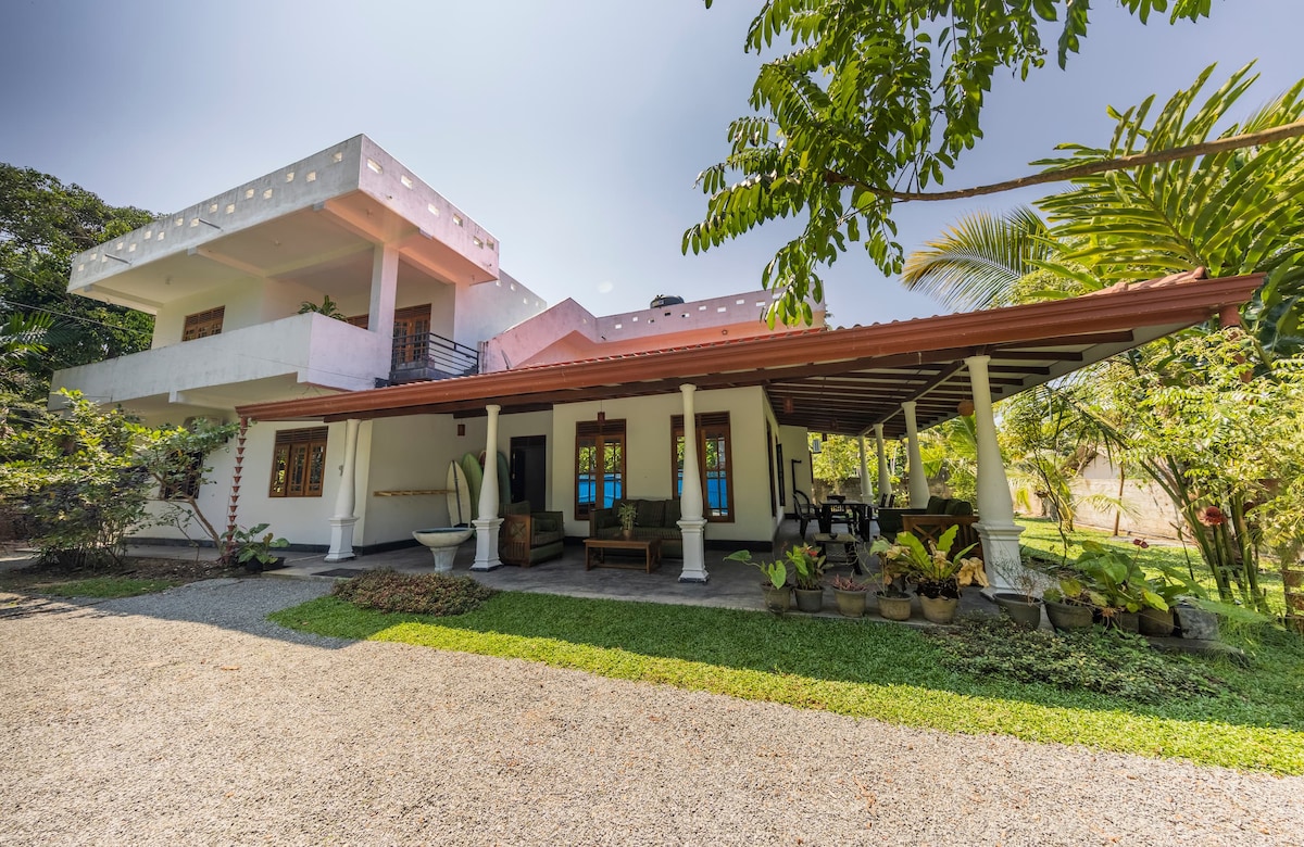 Sanara Villa in Weligama🙏, 5 min from 🌊🏖️🏄 surf beach by scooter🛵🏊, 10 min from Midigama🏄,15 min from Ahangama🏄,15 min from Mirissa🐬. Cozy and Green place🏡🧘, with Kitchen🍴, Bathroom, Double bed, Living room and Private Green Space Outside🌳🪺. Great Wifi to work remotely fiber wifi internet🧑💻 connection. Perfect to stay short and long period.🙏💐
