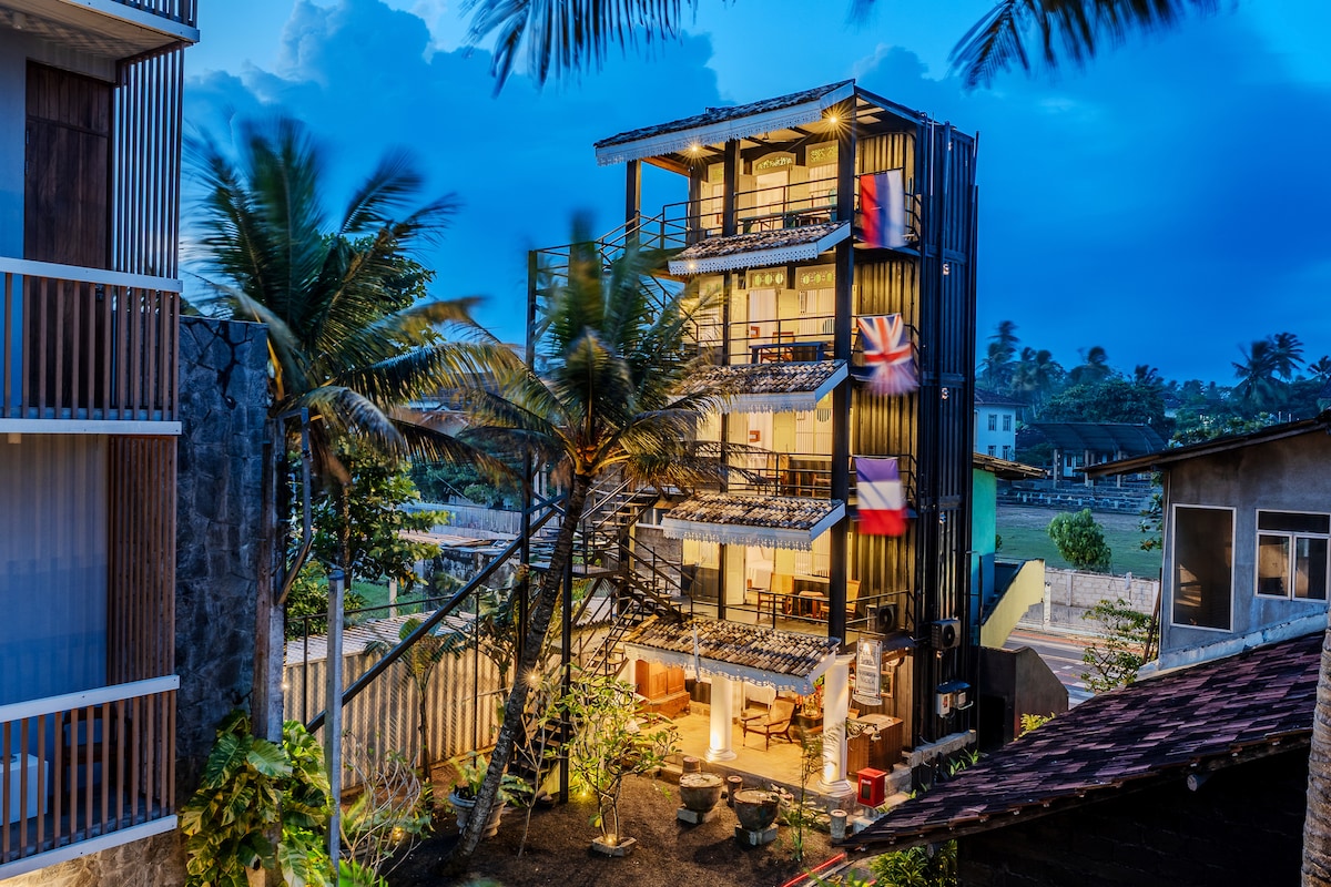 Bask in the serene ambiance of this modern 1st-floor apartment, lovingly hosted by a warm local Sri Lankan family. Relax in a peaceful setting away from busy roads, and admire lush greenery from your balcony. Head to the rooftop terrace for yoga or soak up the treetop views. Located just minutes from Ahangama’s center, the simple yet stylish design promises comfort and privacy, while you enjoy genuine island hospitality.