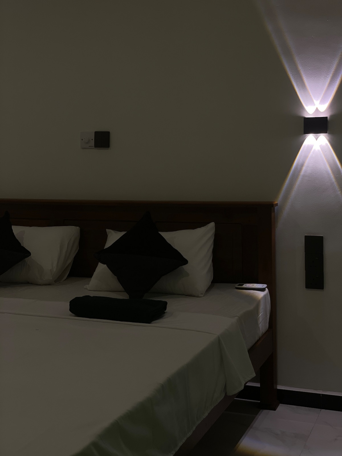 this is a great oppertunity to you. white house lodge includes two bed rooms, one bathroom with hot water, kitchen with kitchen appliances,double stoven, toaster,refrigerator, blender,washing machine, living area,Television, large balcony for enjoy your free time. you can use whole upstair house for this price. not shared with others. you can spend your holidays in a silent environment. not busy area ,like a wild life, it will cool your mind also.