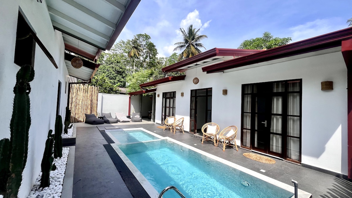 The Little Nest is a charming 1-bedroom villa retreat within a spacious garden just 150 meters from Weligama Beach. Ideal for couples, individuals, or digital nomads, this villa offers an A/C bedroom with an attached bathroom, a kitchenette, and a dining table that doubles as a workspace. Guests can enjoy essential amenities and peaceful surroundings while staying close to surf spots, cafes, and the vibrant beachfront.