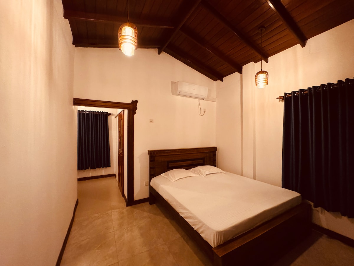 Enjoy a comfortable stay in our private two-room retreat near Unawatuna Beach, ideal for up to 4 guests. Both rooms are air-conditioned and feature dedicated workspaces, fast Wi-Fi, and modern bathrooms. One room offers a high ceiling with a lush green view, while the other includes a cozy living area and a relaxing bathtub. Thoughtfully designed for comfort, privacy, and a peaceful stay close to beaches and local attractions.