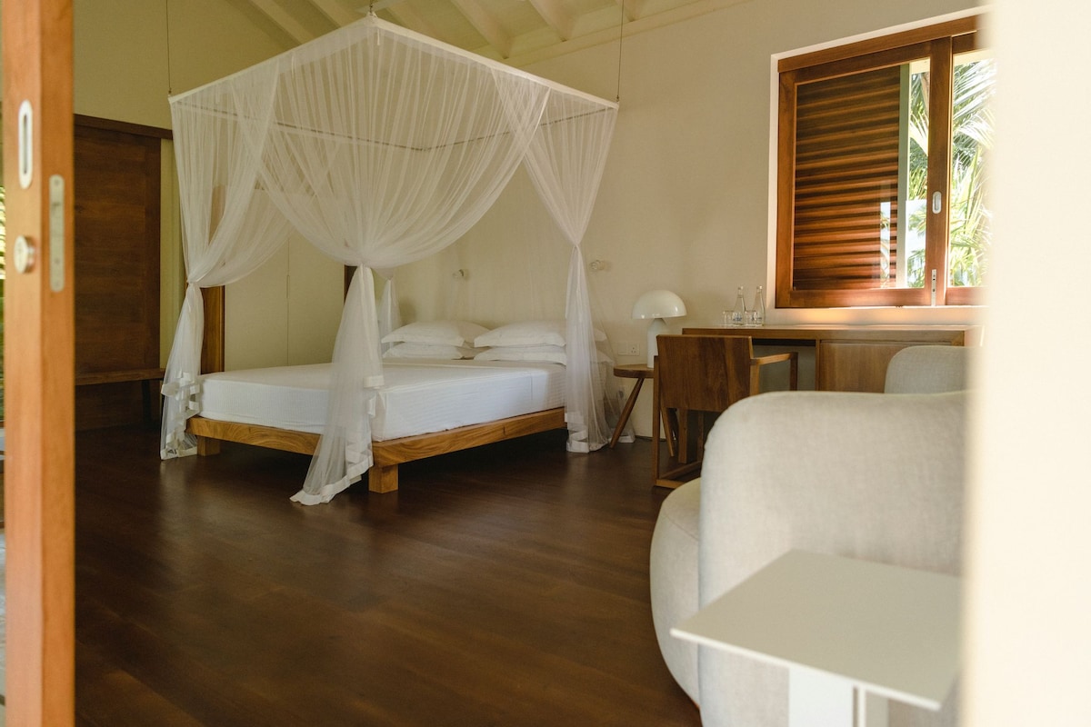 Cocoya is a working coconut and cinnamon plantation. Our house Sama means "Peace" in Sinhalese. It is designed to be a simple, open and spacious plantation home that connects with nature. It features an open living space, a kitchen and direct access to a 17m pool. Upstairs we have a master suite and junior bedroom that share a balcony with plantation views. Both have ensuite open-air showers. Guests enjoy a fully equipped kitchen and exclusive pool access. We do not have air-conditioning.