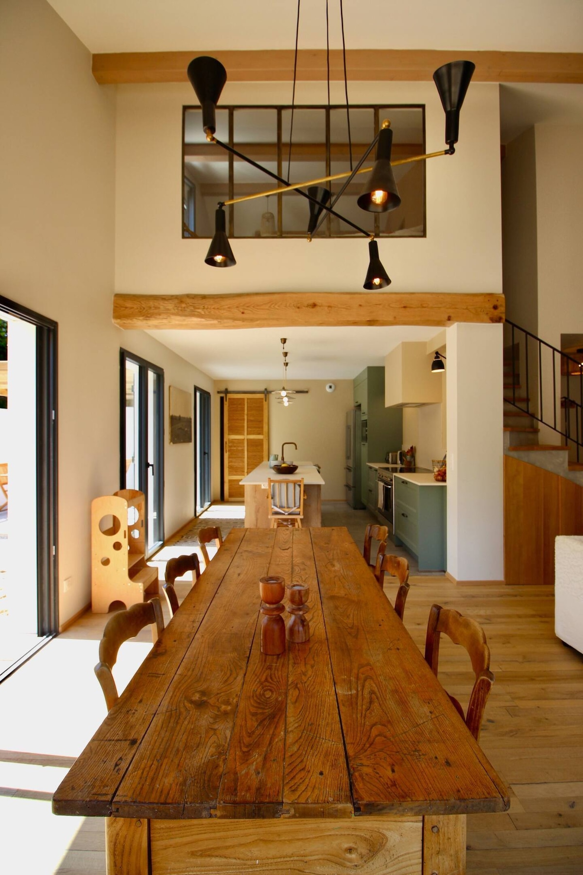 Le gîte Ibarrondoa est un beau gîte lumineux de 150 m2 entièrement fait à neuf dans l'ancien fenil d'une ferme basque traditionnelle. Vous profiterez d'une cuisine tout équipée ouverte sur une vaste pièce de vie lumineuse avec sa grande table familiale et son salon confortable, dans un décor mêlant meubles anciens et confort moderne. Une belle terrasse de 30 m2 donnant sur la montagne et les prés alentours, sans vis à vis, vous offrira des moments conviviaux autour de la plancha.