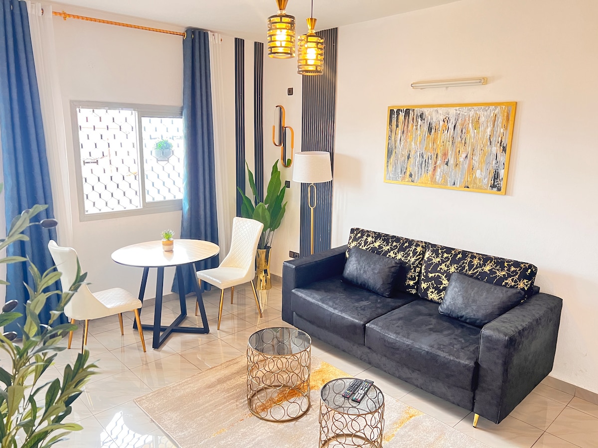 Welcome to this high-end appartment in the heart of Yaoundé, a stone's throw from the Omnisport stadium. This modern accommodation, ideal for business travellers, couples and families, combines elegance and comfort. You will enjoy a central location, a contemporary design with meticulous finishes and top-of-the-range facilities.