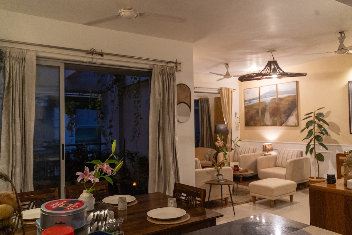 ‘Paradise’ an apartment inspired by modish minimalism while also keeping in mind functionality and a touch of comfort. A perfect getaway. While being located in one of Ahmedabad’s most prestigious townships, our apartment is equipped with all the basics and more. The apartment shares a city skyline view and offers facilities like swimming pool, private cinema (with pre booking), a 24x7 convenience superstore, parks etc. All within its posh locality. Would love to host you at our paradise.