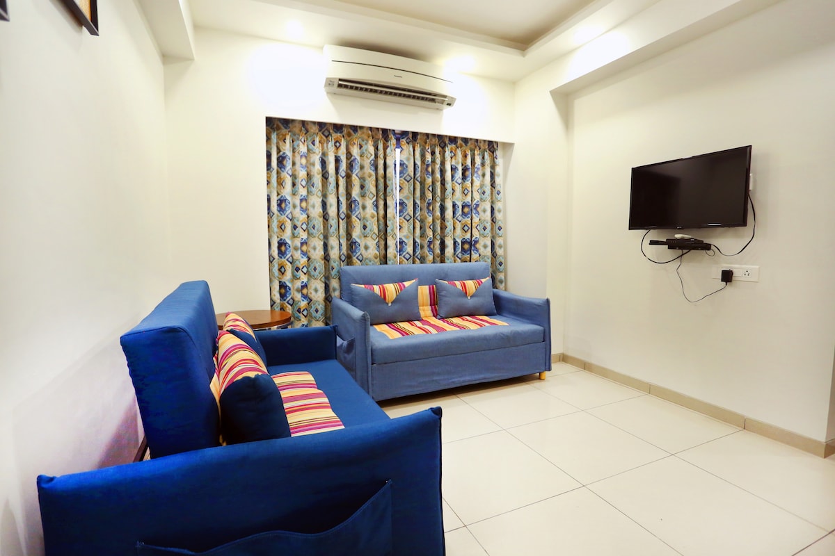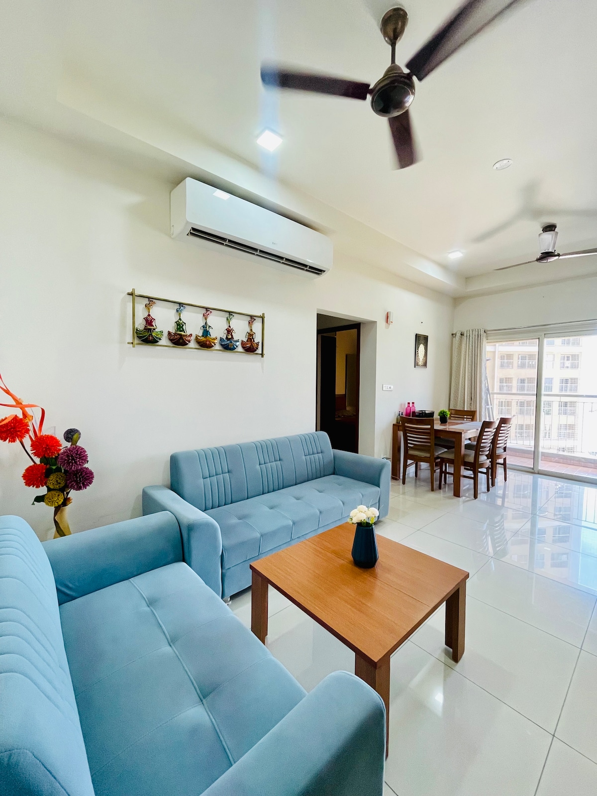 Professionally managed serviced apartment in the heart of GIFT City, offering a clean & comfortable stay. The apartment features a cozy living area, 3 air conditioners, airy balconies with beautiful views, and all essential electronic appliances. A fully operational kitchen with basic utensils is available, along with daily housekeeping for a seamless experience. Located in the centre of GIFT City, with easy access to business hubs and essentials—ideal for corporate guests, family & travelers.