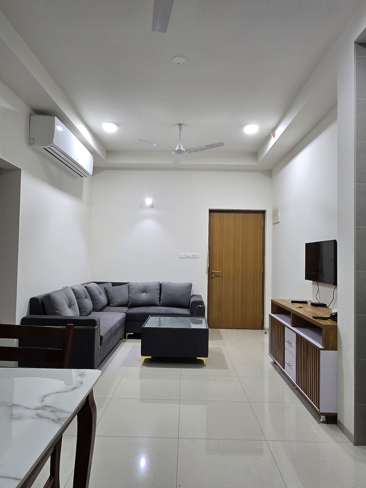 Welcome to your home away from home in the heart of GIFT City, Gandhinagar! This fully furnished, modern apartment offers a perfect blend of comfort, convenience, and style—ideal for both family vacations and corporate stays. Located in a safe and secure community, the space is thoughtfully designed to help you relax after a long day, whether you’re here for business or leisure.