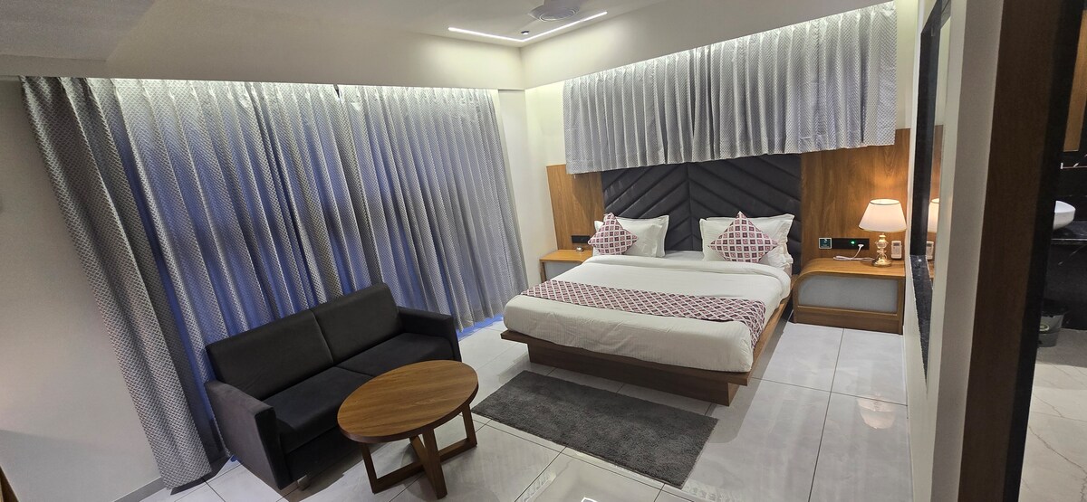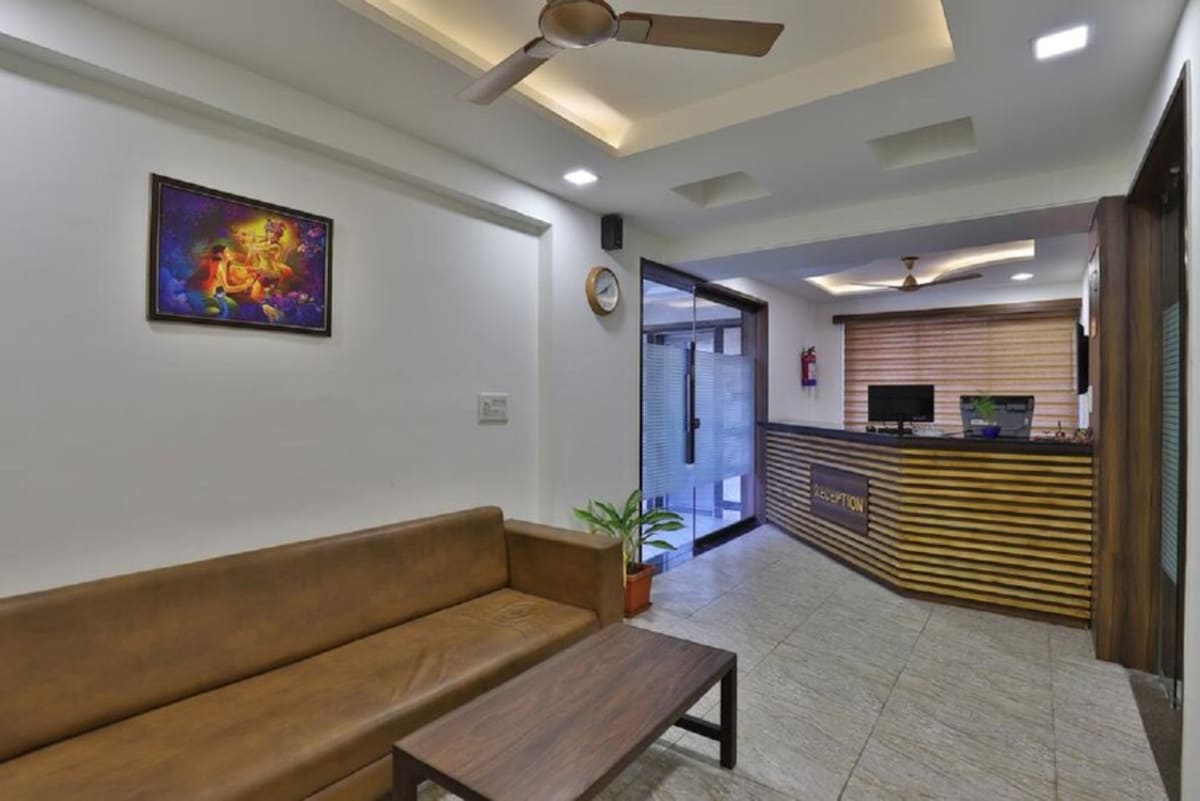 "Stay in a bright, well-ventilated room with AC, Wi-Fi, geyser, LCD TV, and a relaxing city view. Conveniently located in Satellite, opposite Seema Hall, with easy access to major attractions: SG Highway – 1 km Iscon Mega Mall – 2 km Ahmedabad One Mall (Vastrapur) – 4 km Prahladnagar Business Hub – 2 km Vastrapur Lake – 4.5 km Sabarmati Ashram – 10 km Ahmedabad Railway Station – 11 km Sardar Vallabhbhai Patel Airport – 17 km Ideal for both business and leisure travelers."