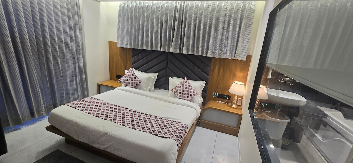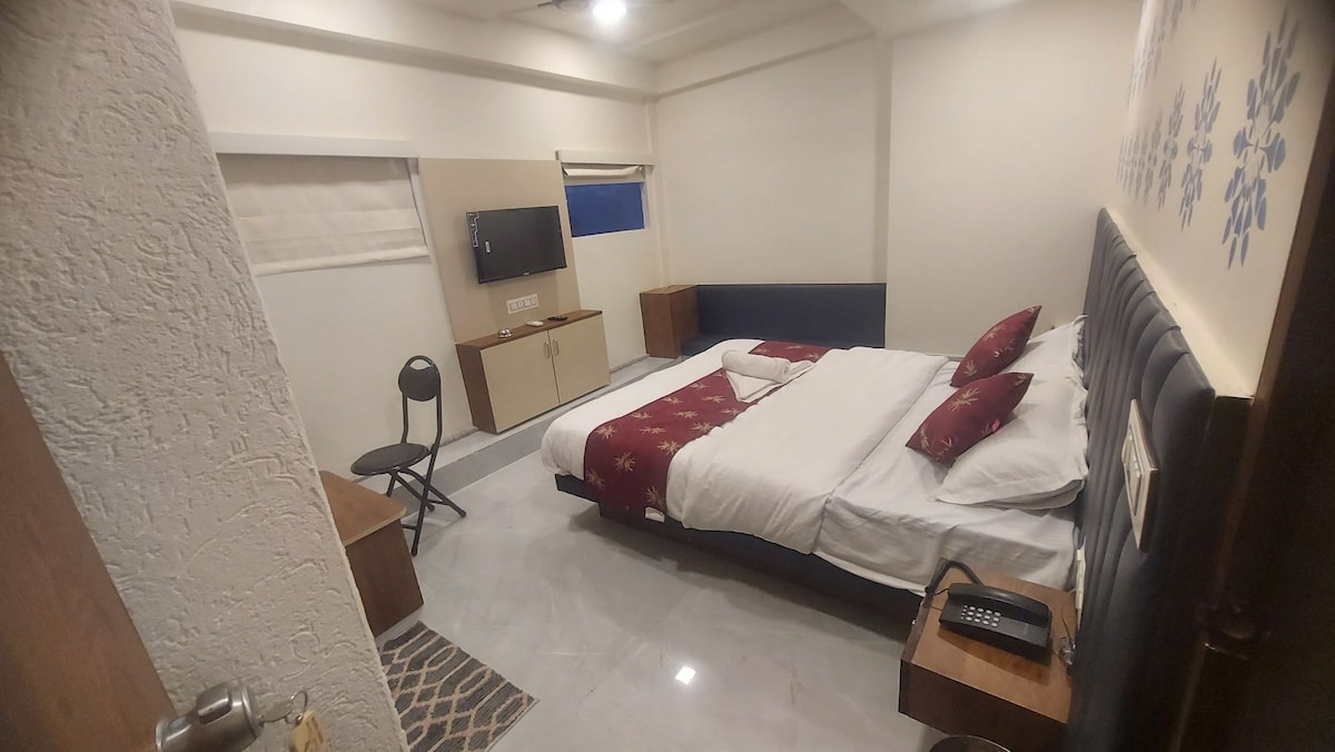 "Stay in a bright, well-ventilated room with AC, Wi-Fi, geyser, LCD TV, and a relaxing city view. Conveniently located in Satellite, opposite Seema Hall, with easy access to major attractions: SG Highway – 1 km Iscon Mega Mall – 2 km Ahmedabad One Mall (Vastrapur) – 4 km Prahladnagar Business Hub – 2 km Vastrapur Lake – 4.5 km Sabarmati Ashram – 10 km Ahmedabad Railway Station – 11 km Sardar Vallabhbhai Patel Airport – 17 km Ideal for both business and leisure travelers."